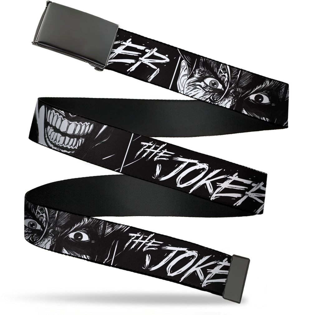 Wholesale Web Belt Blank Black Buckle - THE JOKER Smiling Eyes Sketch Close-Up Black/White Webbing | Wholesale Web Belts