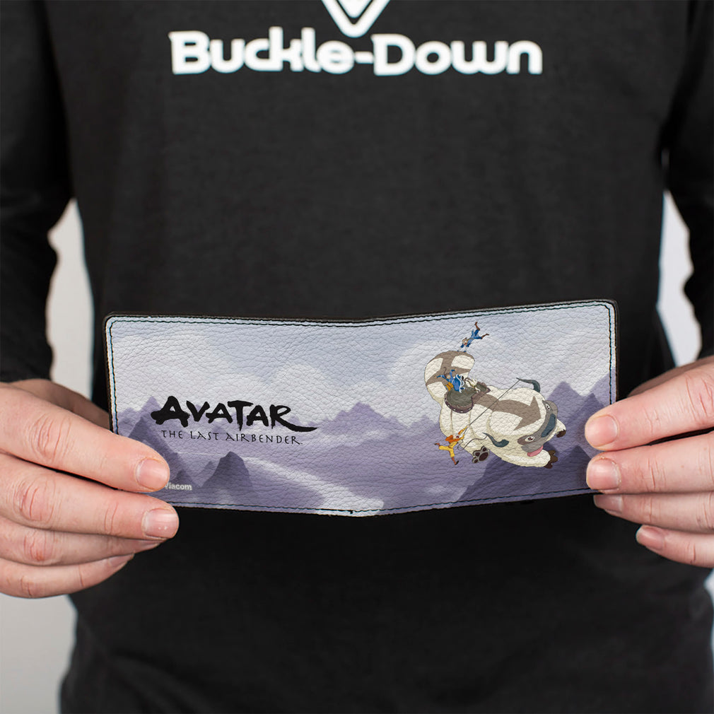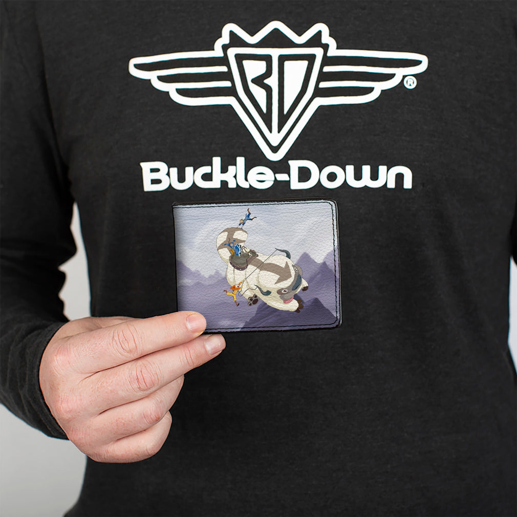 Wholesale Bi-Fold Wallet - Avatar the Last Airbender Appa Carrying 4-Character Group Scene Over Mountains + Logo Grays Black | Wholesale Bi-Fold Wallets
