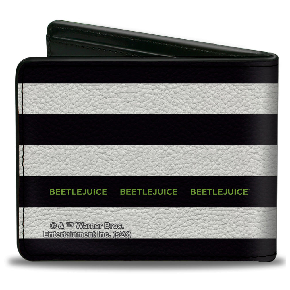 Wholesale Bi-Fold Wallet - Beetlejuice SAY IT TEN TIMES Sandworm Pose Stripe Black/White/Green | Wholesale Bi-Fold Wallets