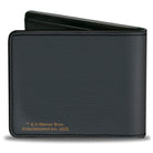 This awesome men's bi-fold wallet is made from premium vegan leather. It measures 4.0x3.5x0.5 Inches, and features the standard billfold, 5 card slots, and windowed ID holder. The logos are applied using advanced printing technologies, so the wallet will still look good after years of hard use. This product is assembled in the USA by Buckle-Down, Inc. and Officially Licensed by Warner Bros. Entertainment Inc.
