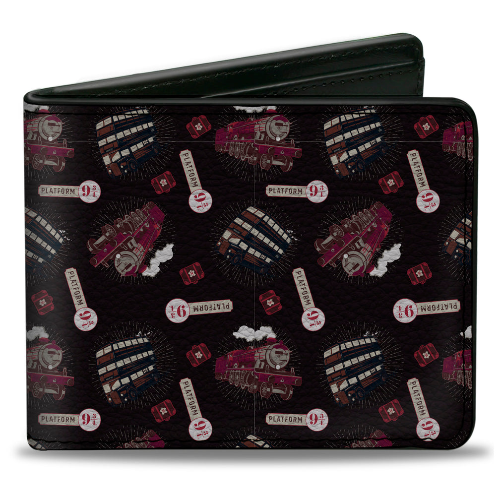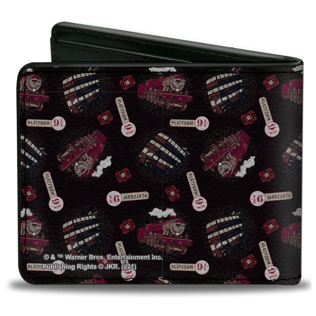 Wholesale Bi-Fold Wallet - Harry Potter Hogwarts Express and Knight Bus Collage Black Reds | Wholesale Bi-Fold Wallets