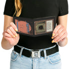 This awesome men's bi-fold wallet is made from premium vegan leather. It measures 4.0x3.5x0.5 Inches, and features the standard billfold, 5 card slots, and windowed ID holder. The logos are applied using advanced printing technologies, so the wallet will still look good after years of hard use. This product is assembled in the USA by Buckle-Down, Inc. and Officially Licensed by Wizards of the Coast, LLC.