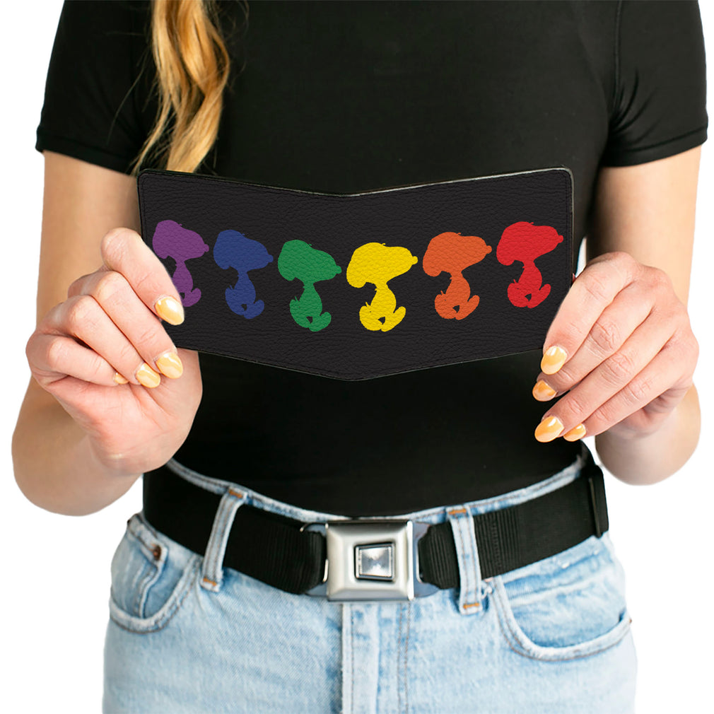 Bi-Fold Wallet - Peanuts Snoopy Silhouette Pose Black/Rainbow Multi Color | Wholesale Bi-Fold Wallets