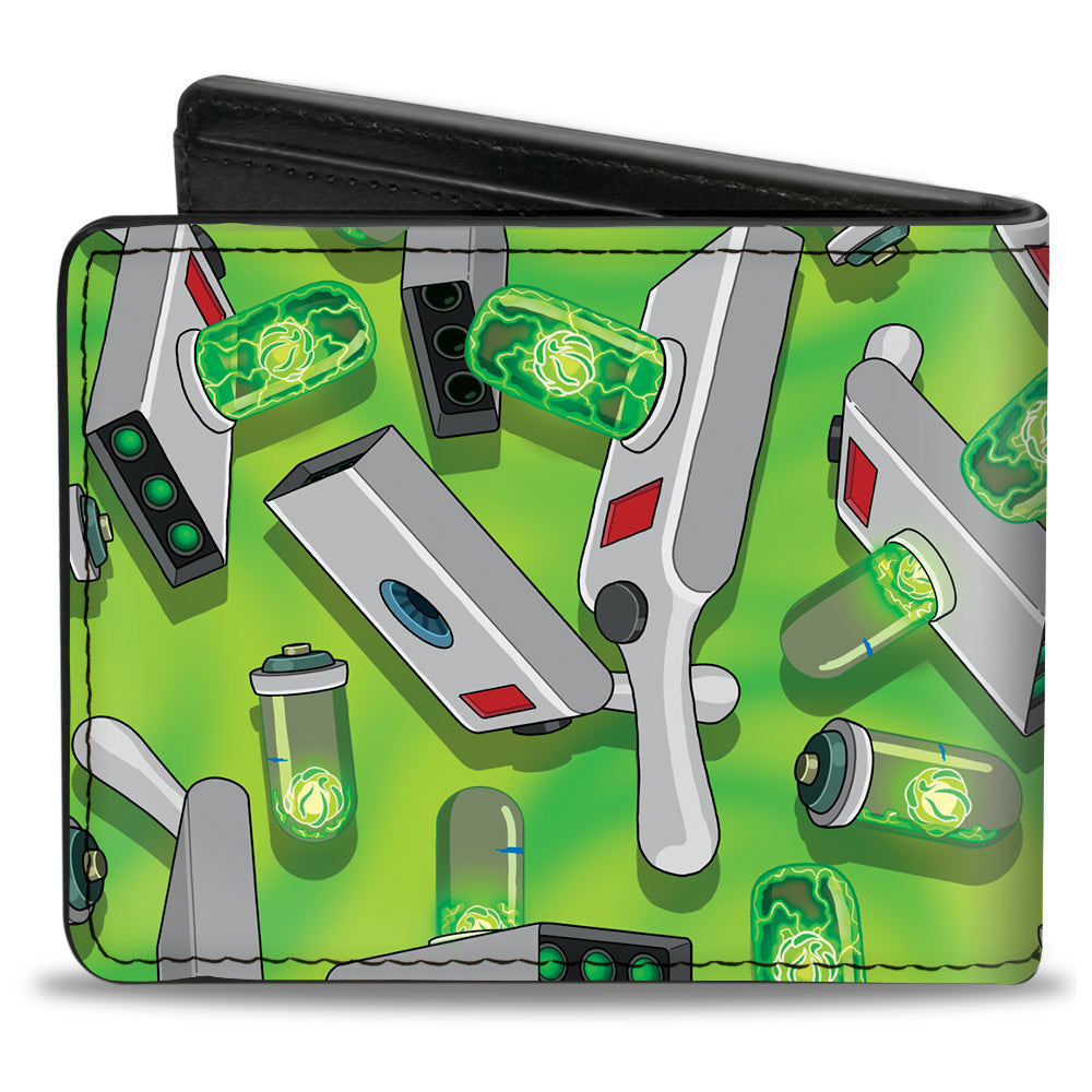 Wholesale Bi-Fold Wallet - Rick and Morty Portal Gun Collage Greens | Wholesale Bi-Fold Wallets