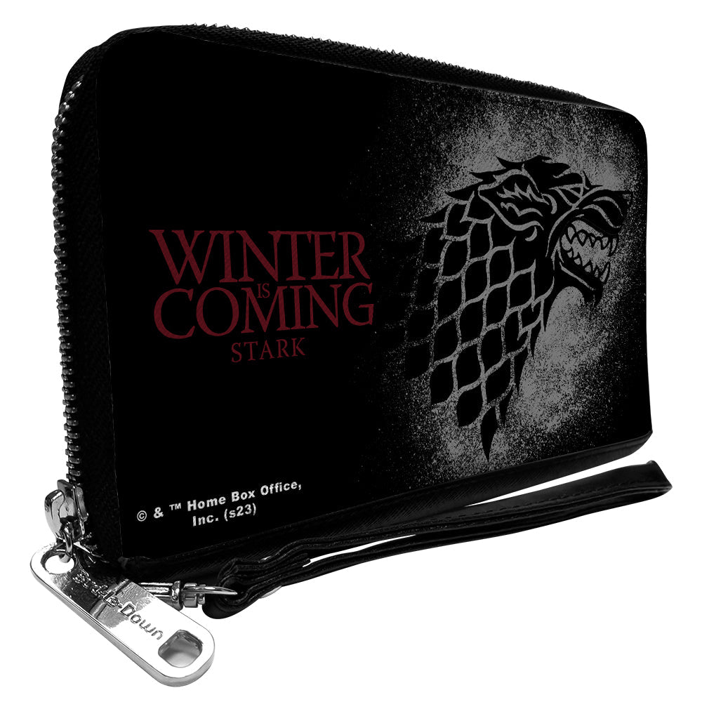 Wholesale PU Zip Around Wallet Rectangle - Game of Thrones House Stark Sigil WINTER IS COMING STARK Black/Gray/Red | Wholesale Clutch Zip Around Wallets