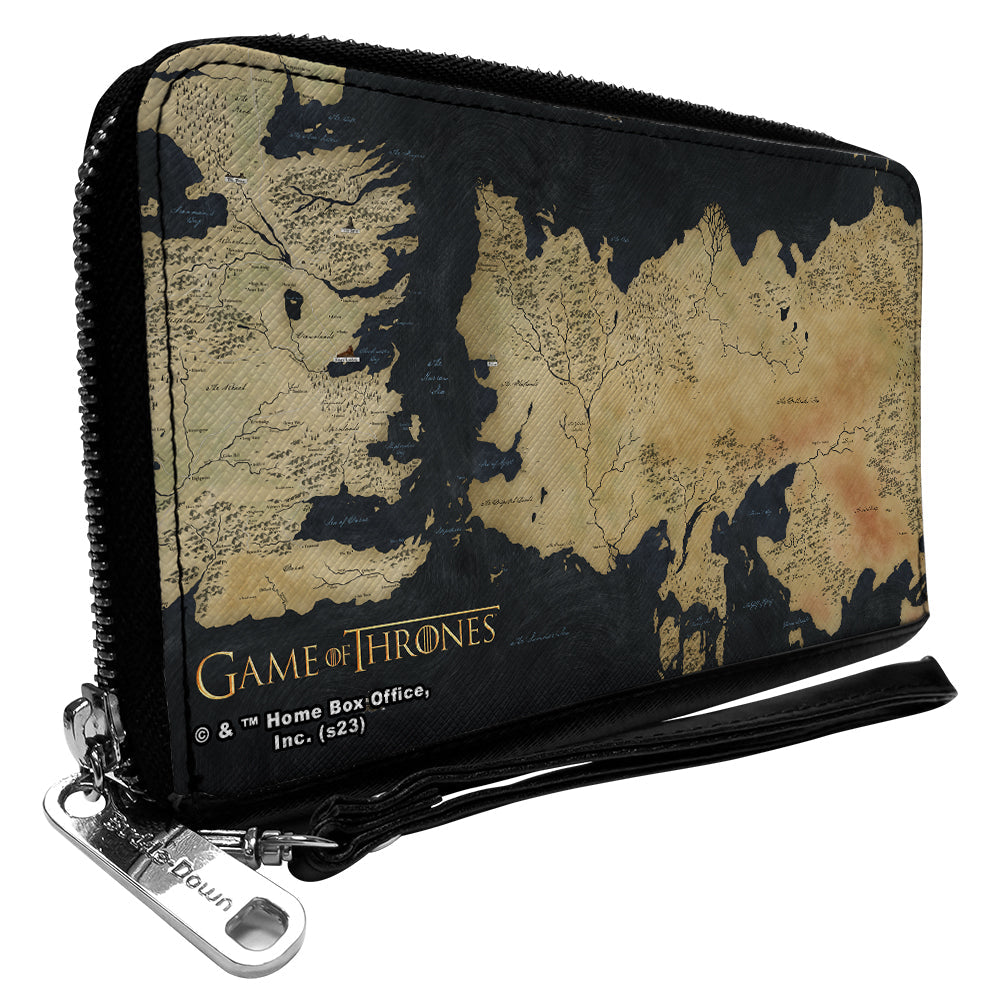 Wholesale PU Zip Around Wallet Rectangle - GAME OF THRONES World Map Westeros and Essos Grays/Tans | Wholesale Clutch Zip Around Wallets