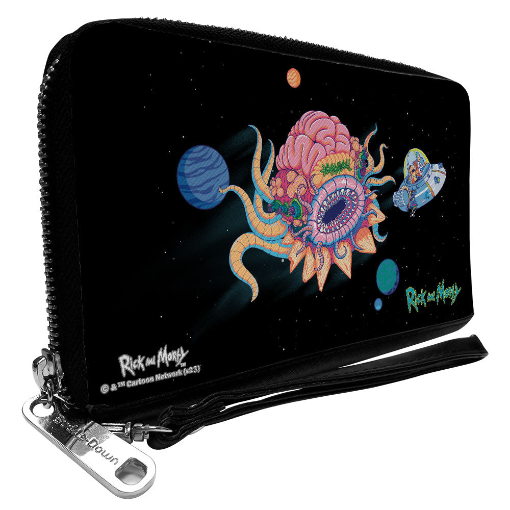 Wholesale PU Zip Around Wallet Rectangle - RICK AND MORTY Space Cruiser Escape Scene | Wholesale Clutch Zip Around Wallets