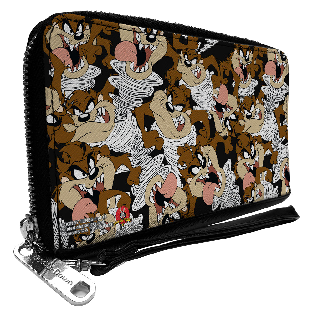 Wholesale PU Zip Around Wallet Rectangle - Tasmanian Devil Vortex Poses Scattered Black | Wholesale Clutch Zip Around Wallets