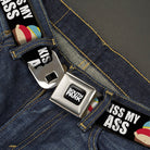 Wholesale SOUTH PARK Title Logo Full Color Black/White Seatbelt Belt - South Park Cartman Pants KISS MY ASS Pose Black/White Webbing | Wholesale Seatbelt Belts