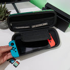 Includes a compartment for up to 10 Nintendo Switch cartridges, and separate compartment for additional accessories