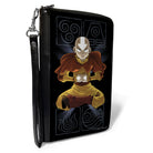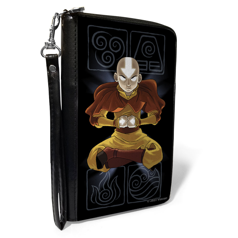 Wholesale Women's PU Zip Around Wallet Rectangle - Avatar the Last Airbender Aang Meditating Pose Bending Elements Icons Black Grays | Wholesale Clutch Zip Around Wallets