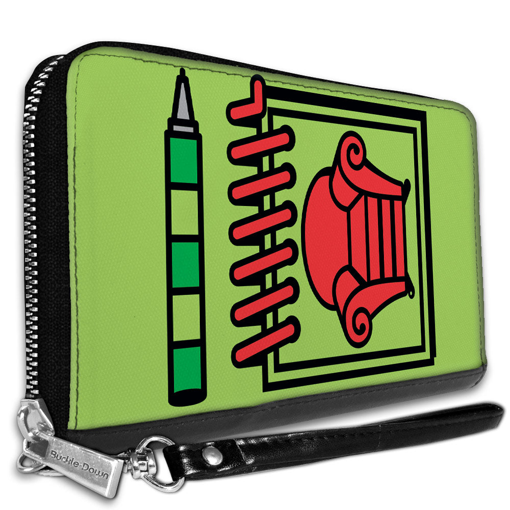 Wholesale Women's PU Zip Around Wallet Rectangle - Blue's Clues Steve's Handy Dandy Notebook Thinking Chair + Stripes Paw Greens Red Blue | Wholesale Clutch Zip Around Wallets