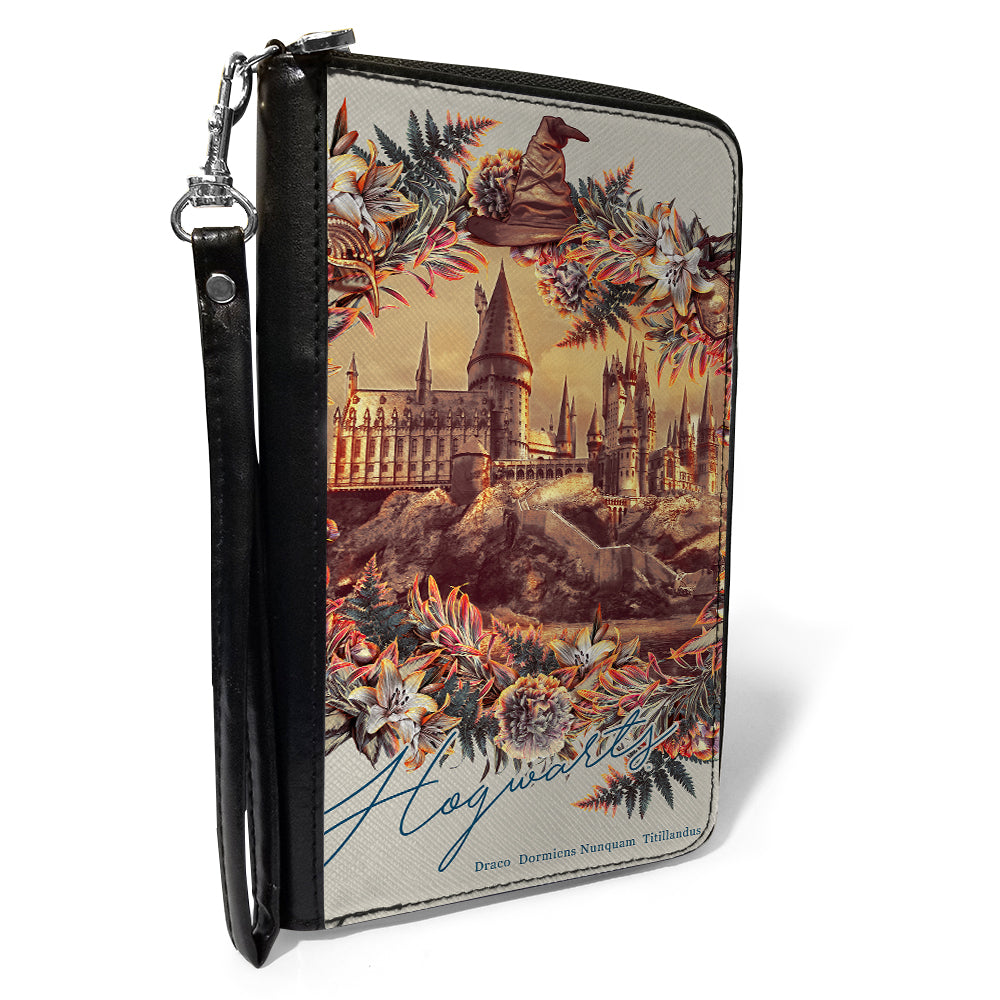Wholesale Women's PU Zip Around Wallet Rectangle - Harry Potter Hogwarts Castle Floral Collage Gray | Wholesale Clutch Zip Around Wallets
