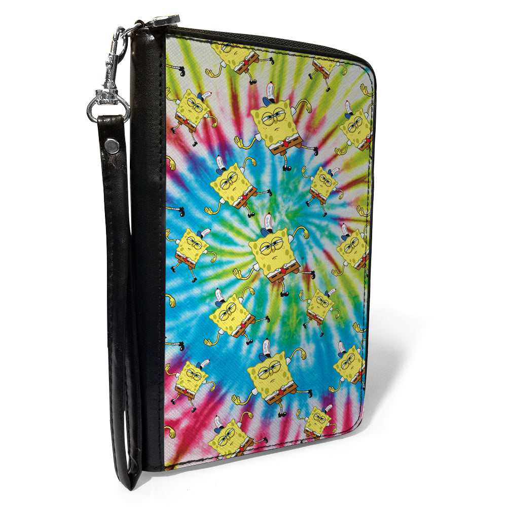 Wholesale Women's PU Zip Around Wallet Rectangle - SpongeBob Dancing Pose Scattered Tie Dye Multi Color