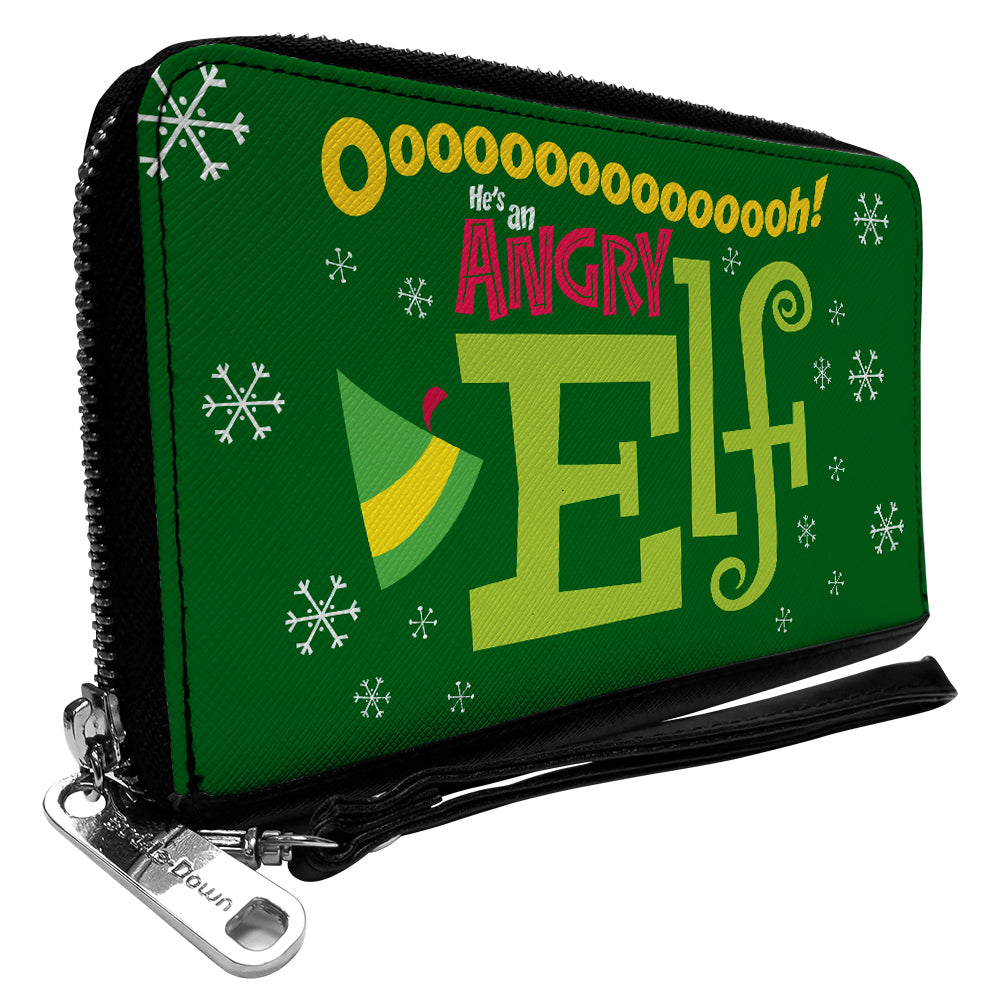 Wholesale Women's PU Zip Around Wallet Rectangle - Elf OH HE'S AN ANGRY ELF Quote Greens Yellow Red