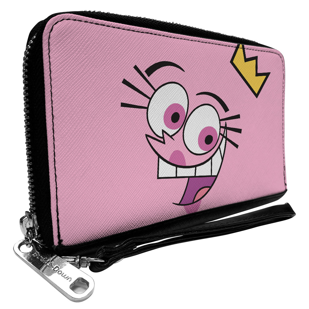 Wholesale PU Zip Around Wallet Rectangle - The Fairly OddParents Wanda Face Expression CLOSE-UP Pink