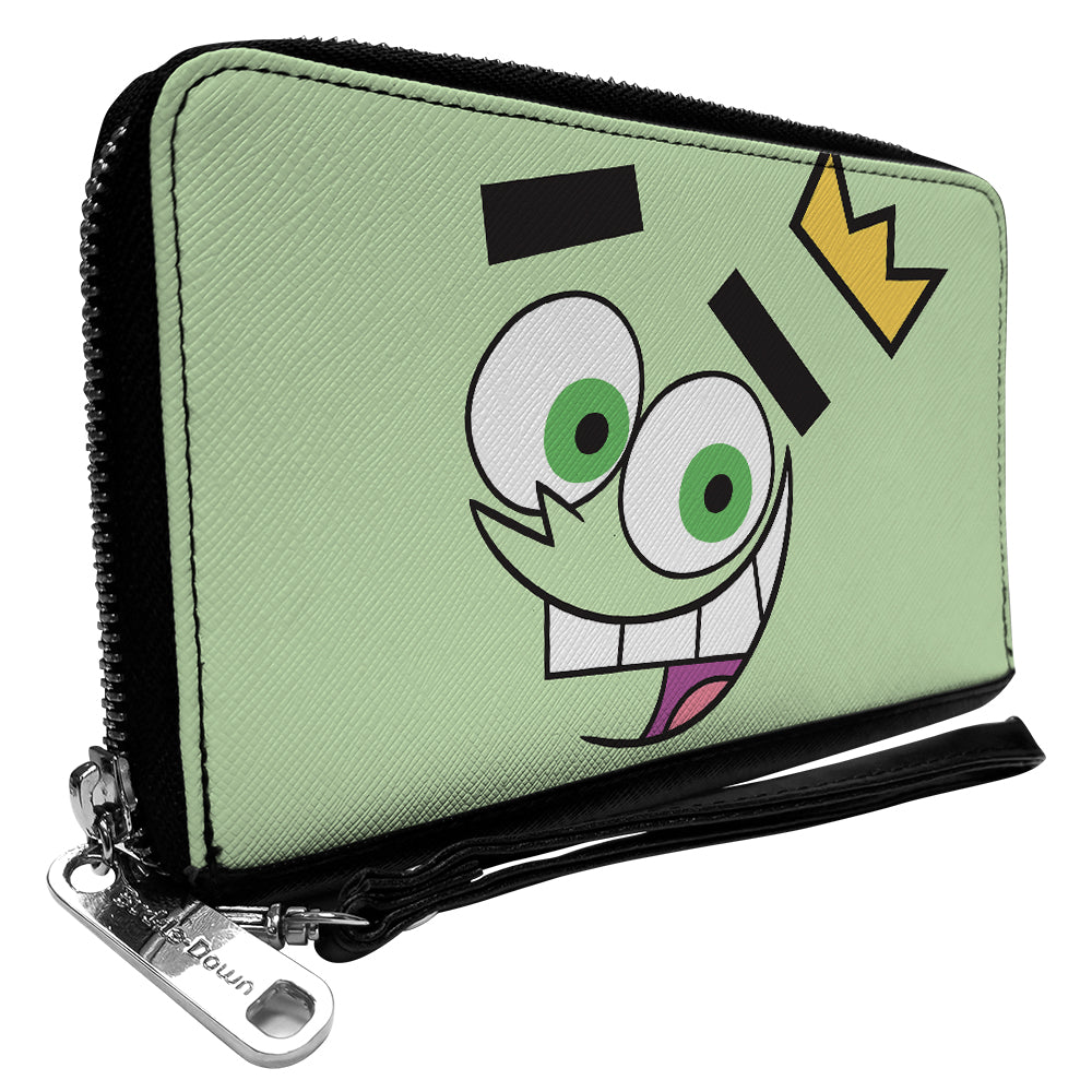 Wholesale PU Zip Around Wallet Rectangle - The Fairly OddParents Cosmo Face Expression CLOSE-UP Green