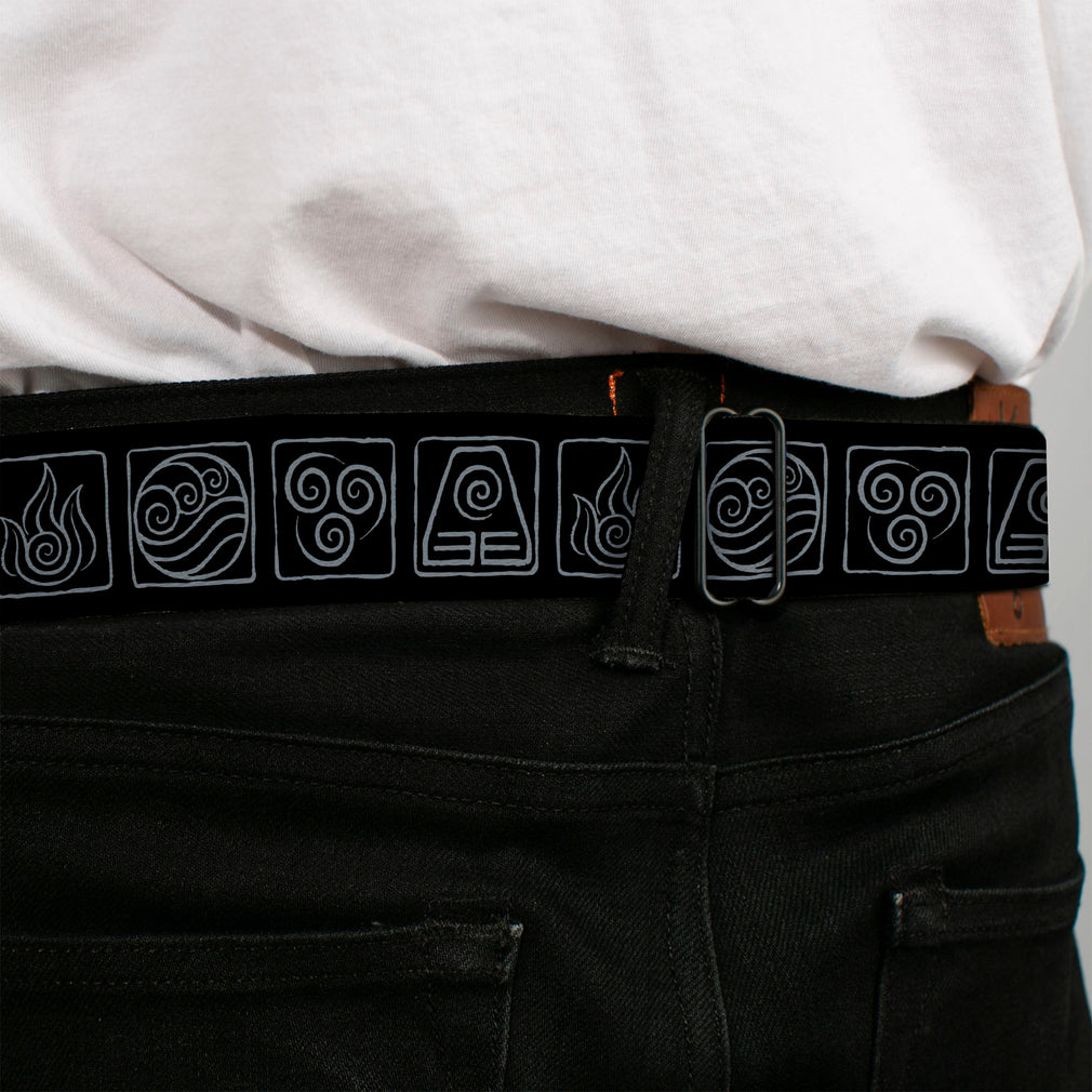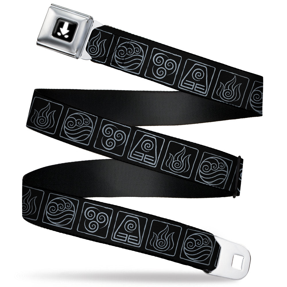 Wholesale Avatar the Last Airbender Aang Glowing Arrow/Eyes Full Color Black/White Seatbelt Belt - Avatar the Last Airbender Bending Elements Icons Black/Gray Webbing