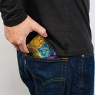 This awesome men's bi-fold wallet is made from premium vegan leather. It measures 4.0x3.5x0.5 Inches, and features the standard billfold, 5 card slots, and windowed ID holder. The logos are applied using advanced printing technologies, so the wallet will still look good after years of hard use. This product is made by Buckle-Down, Inc. and Officially Licensed by Wizards of the Coast.