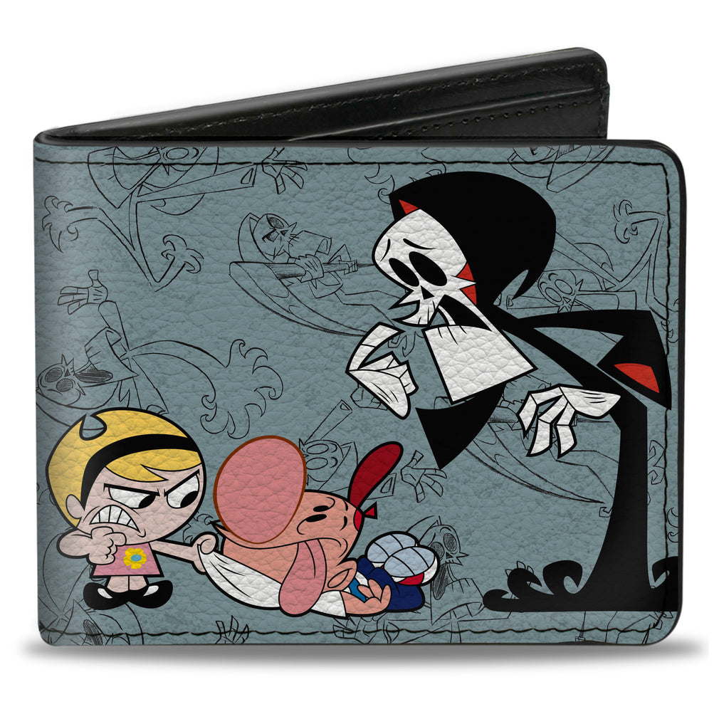 Wholesale Bi-Fold Wallet - The Grim Adventures of Billy & Mandy Group Pose and Grim Sketches Gray | Wholesale Bi-Fold Wallets