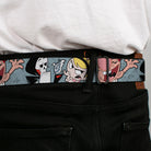 Buckle-Down's iconic Seatbelt Belt is a cool, smart, and exciting blend of fashion and function. Always a conversation starter, our Seatbelt Belt adjusts to perfectly fit your waist while showcasing your unique sense of style. Our Seatbelt Belts are made with authentic automotive style seatbelt buckles making them easy to open and close at the push of a button. Our adult-size Seatbelt Belts are 1.5 inches wide and our kid-sized Seatbelt belts are 1.0 inch wide. This product is Handcrafted in USA by Buckle-Down Inc. and officially licensed by Warner Bros. Animation.
