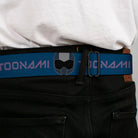 Wholesale TOONAMI Title Logo Full Color Blue/Purple Seatbelt Belt - TOONAMI Title Logo and Robot TOM Head Blue/Purple/Grays Webbing | Wholesale Seatbelt Belts