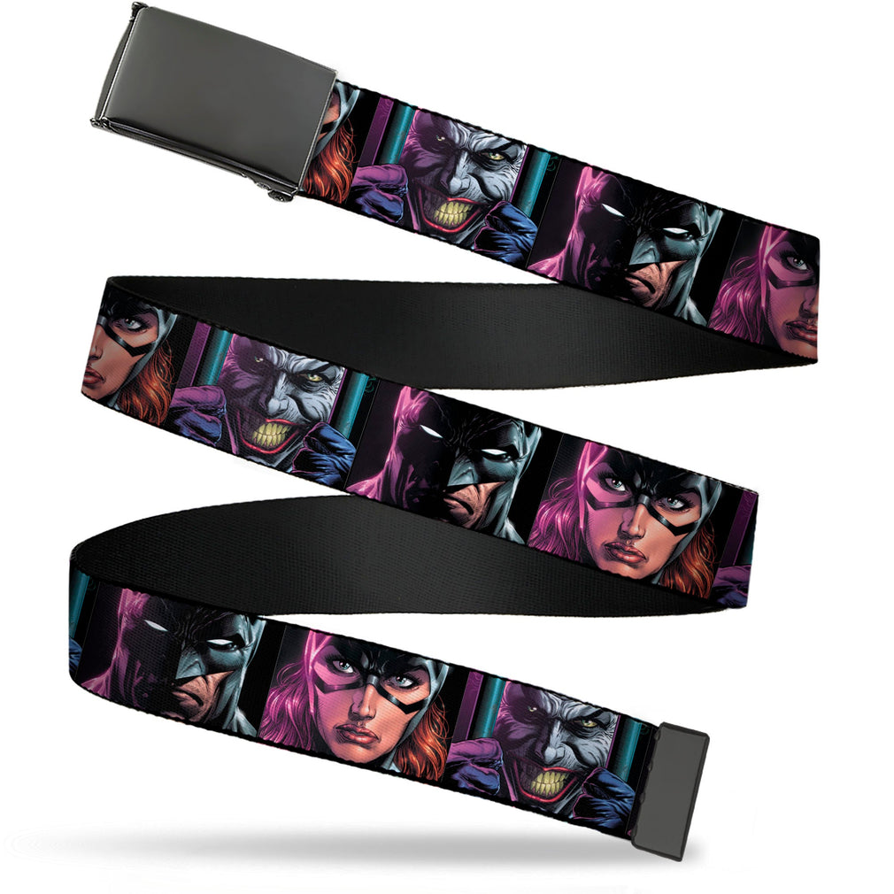 Wholesale Web Belt Blank Black Buckle - Batman Batgirl and Joker Comic Book Cover Face Close-Ups Black Webbing | Wholesale Web Belts