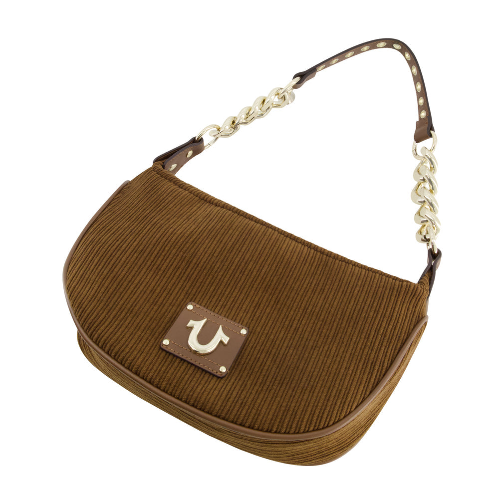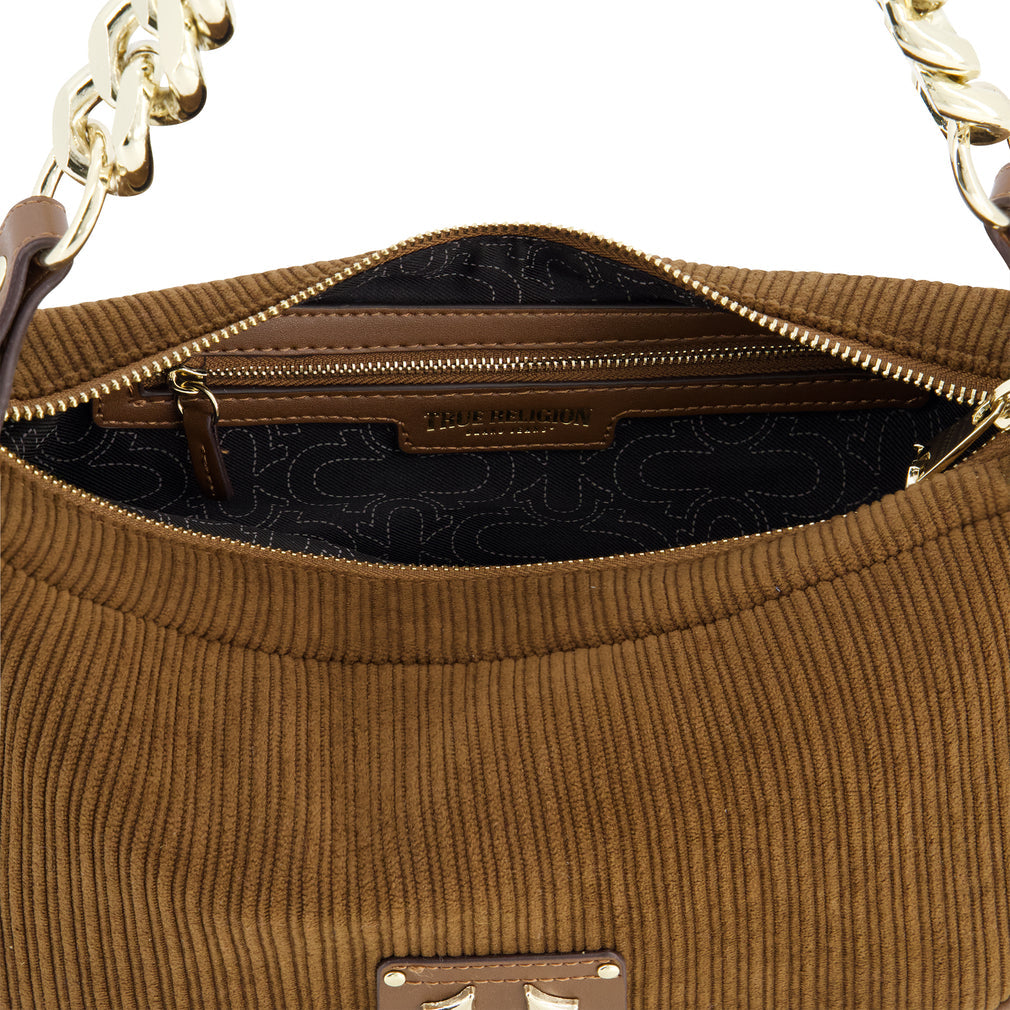 True Religion Corduroy Chain Hobo Bag - Brown | Wholesale Handbag - Hobo Bag