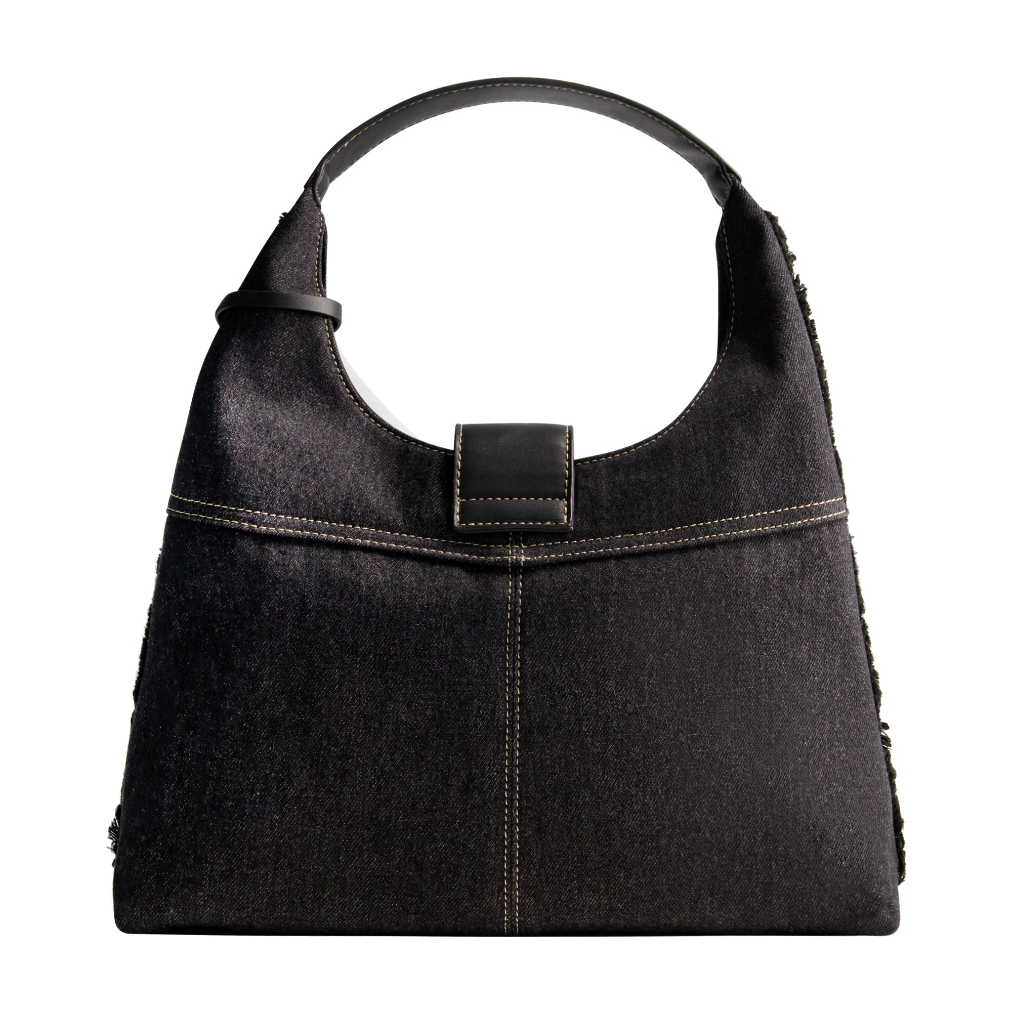 True Religion Frayed Denim Hobo, Black | Wholesale Hangbag - Hobo Bag