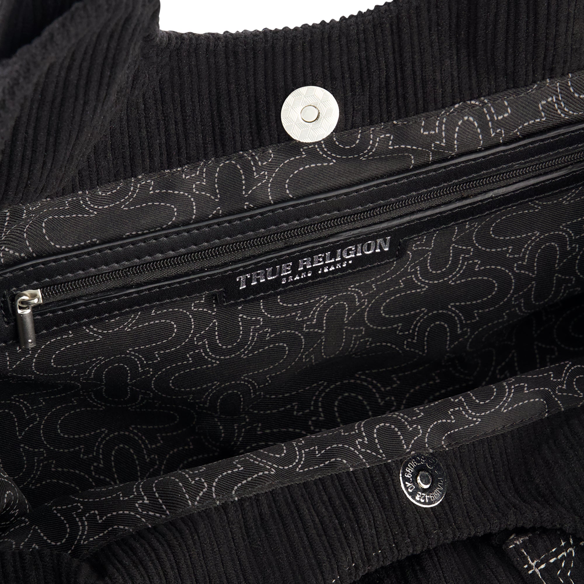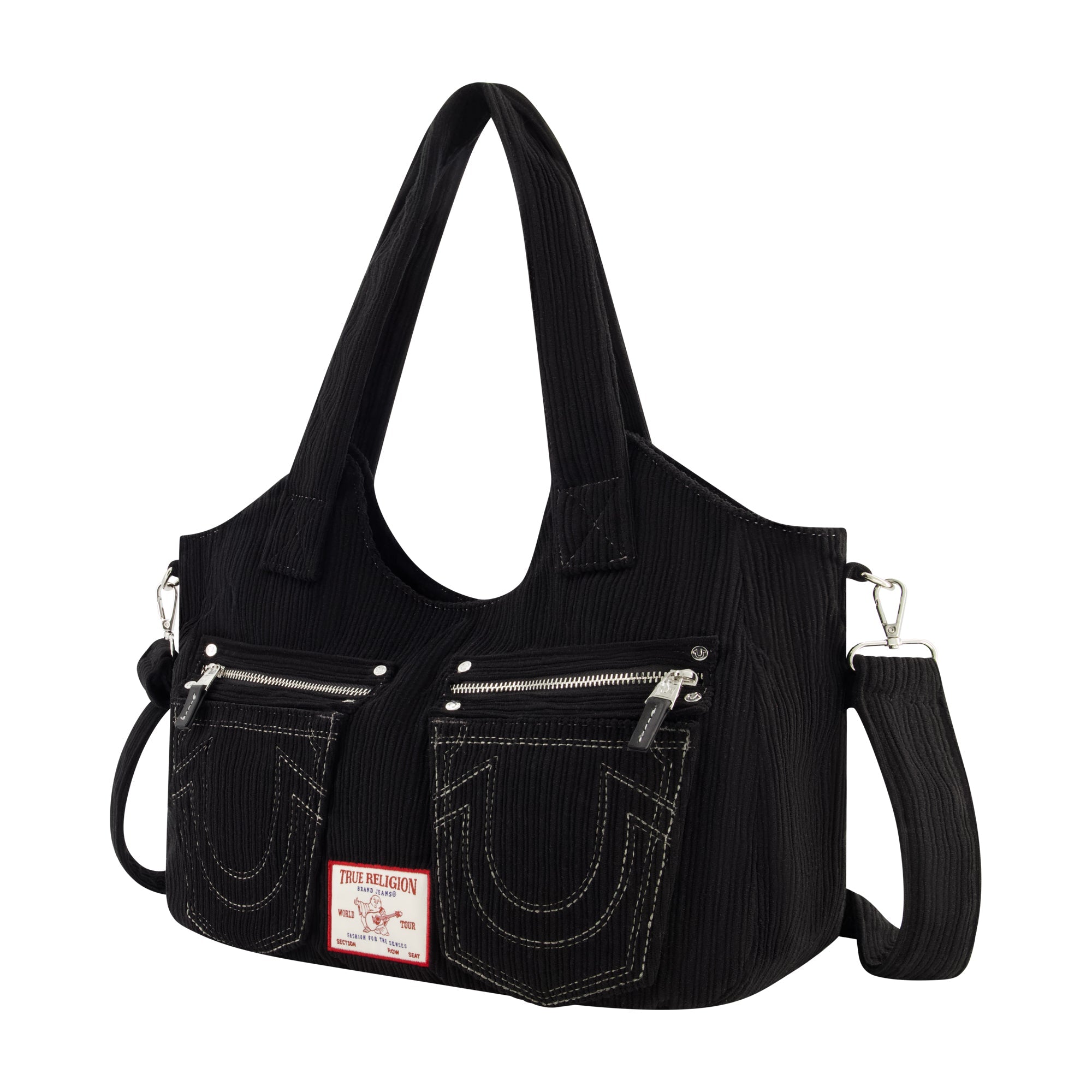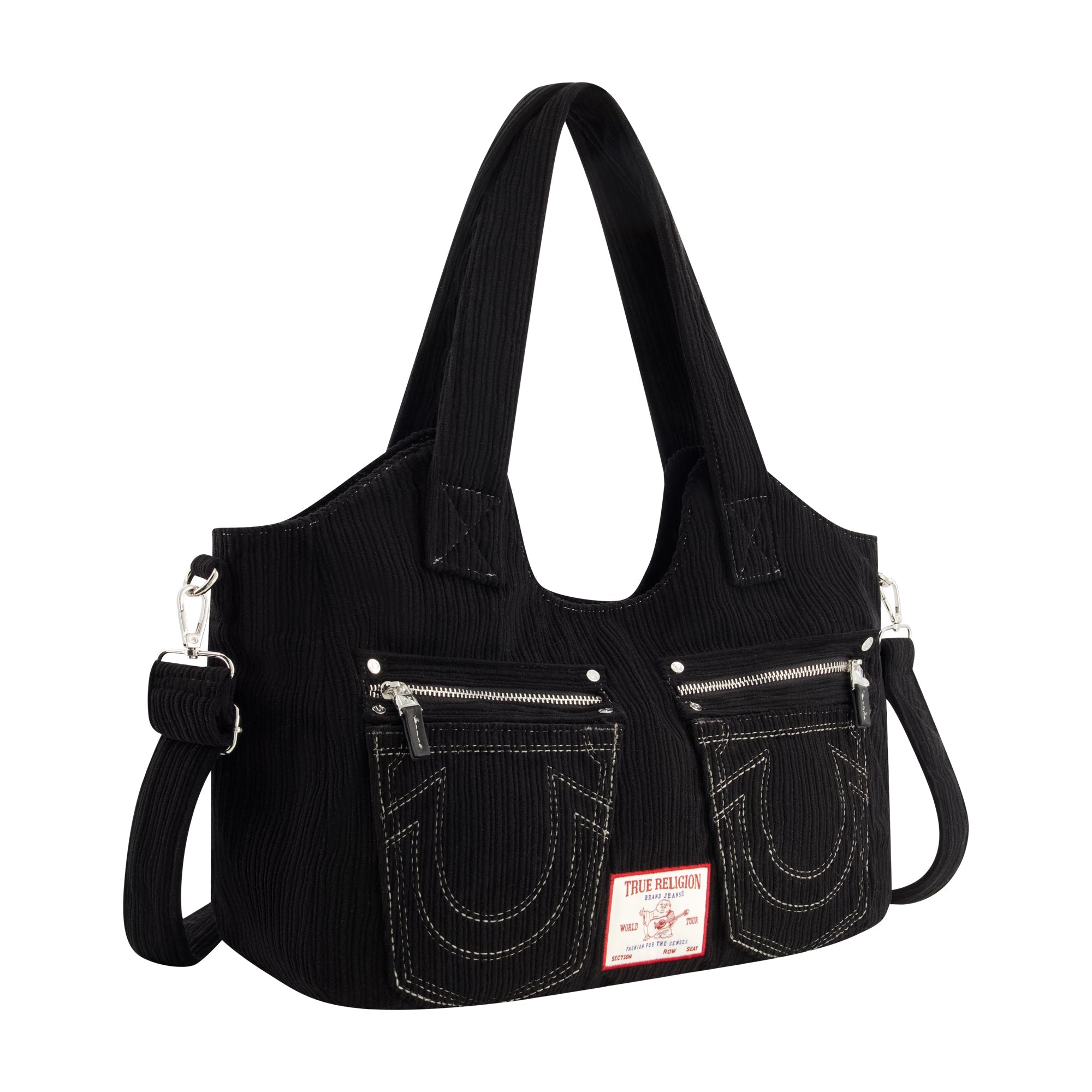 True Religion Horseshoe Stitch Corduroy Satchel - Black | Wholesale Handbag - Satchel