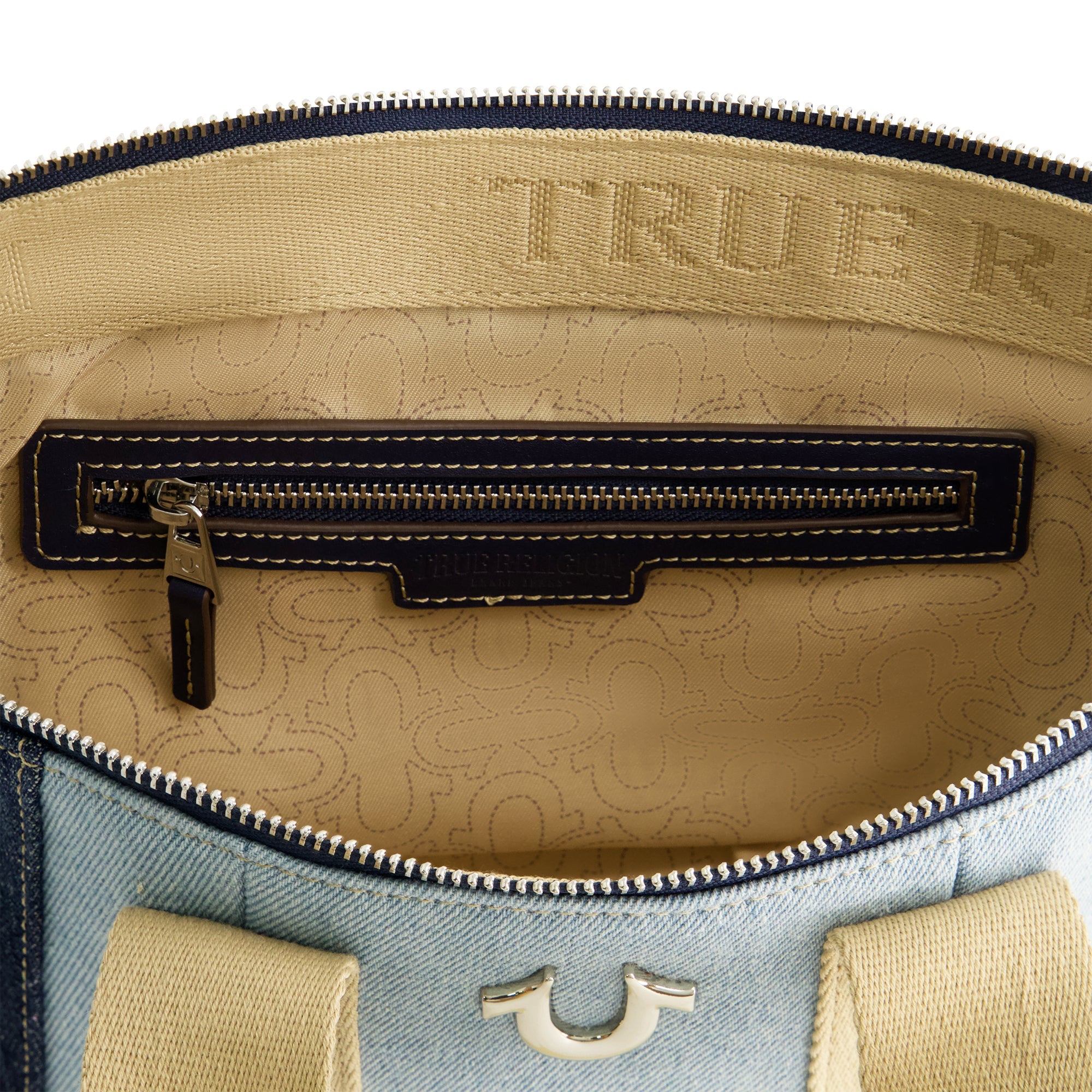 True Religion Licensed Patchwork Denim Tote Bag with Adjustable Strap, DENIM/BLUE | Wholesale Tote Bag