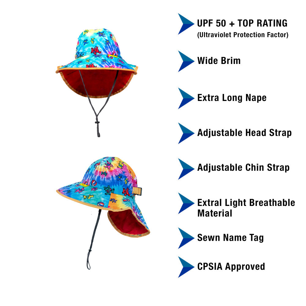 Enhance your store's offerings with the Grateful Dead Sun Hat for Babies, blending style, safety, and the iconic charm of the Grateful Dead. Order now to provide your customers with a sun hat that truly stands out.