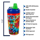 This sippy cup is double insulated to keep beverages cooler for longer, and it comes with a locking, spill-proof lid to prevent messes. The dentist-recommended soft spout is easy to remove and sanitize, ensuring your child's hygiene and comfort. Made of strong, durable plastic, this cup is built to withstand the rigors of daily use. Plus, it’s top-rack dishwasher safe for added convenience.