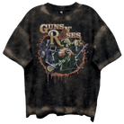 Giant Vintage Guns n Roses Skeltons Live 2-Sided Print Chocolate Spray Washed T-Shirt