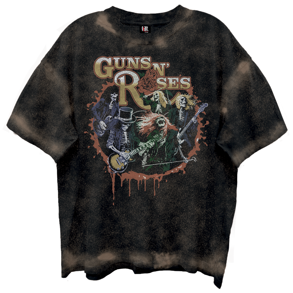 Giant Vintage Guns n Roses Skeltons Live 2-Sided Print Chocolate Spray Washed T-Shirt | Wholesale Band T-Shirts