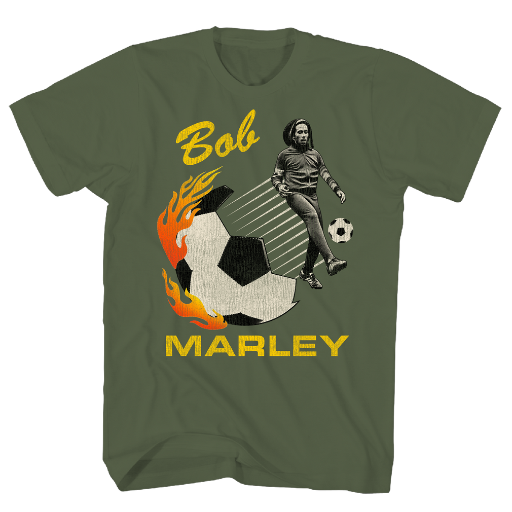 BOB MARLEY PHOTO SOCCER GREEN MILITARY TEE | Wholesale Band T-Shirts