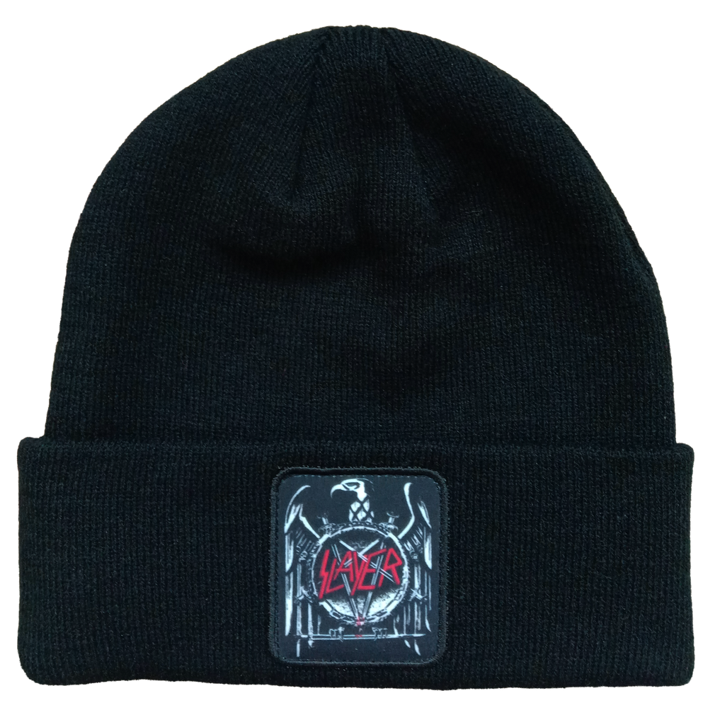 SLAYER EAGLE PATCH 1X1 RIBBED BLACK ACRYLIC KNIT HAT | Wholesale Beanie