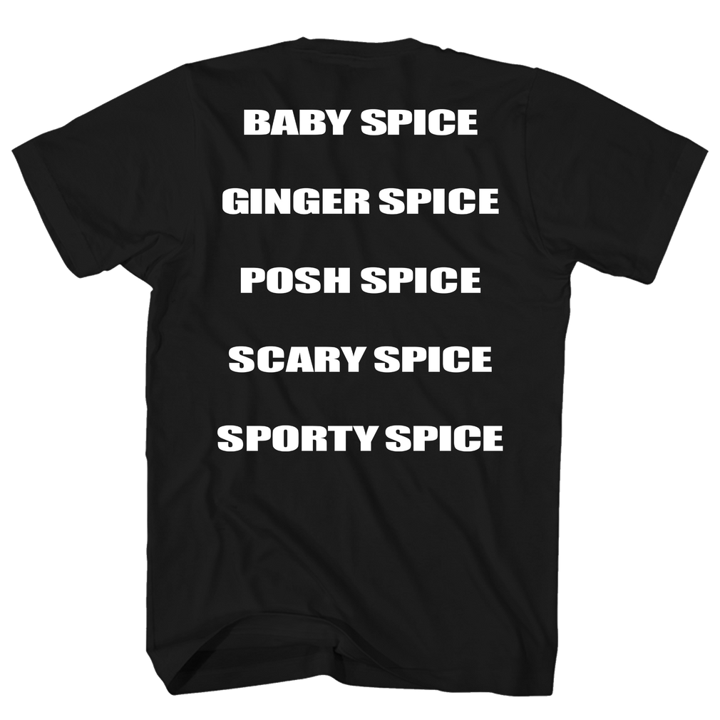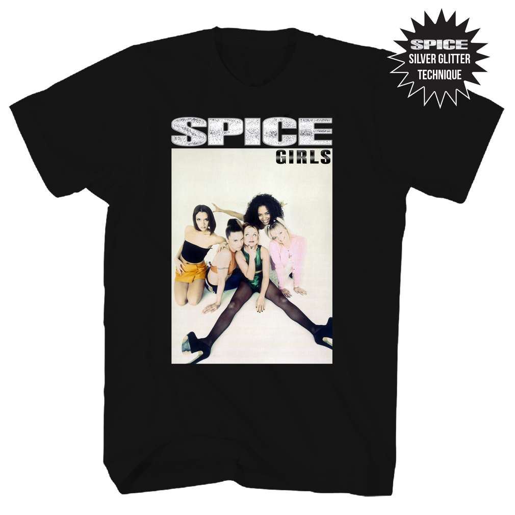 Spice Girls Silver Glitter Group Photo Front and Back Print Black T-Shirt | Wholesale Band T-Shirts