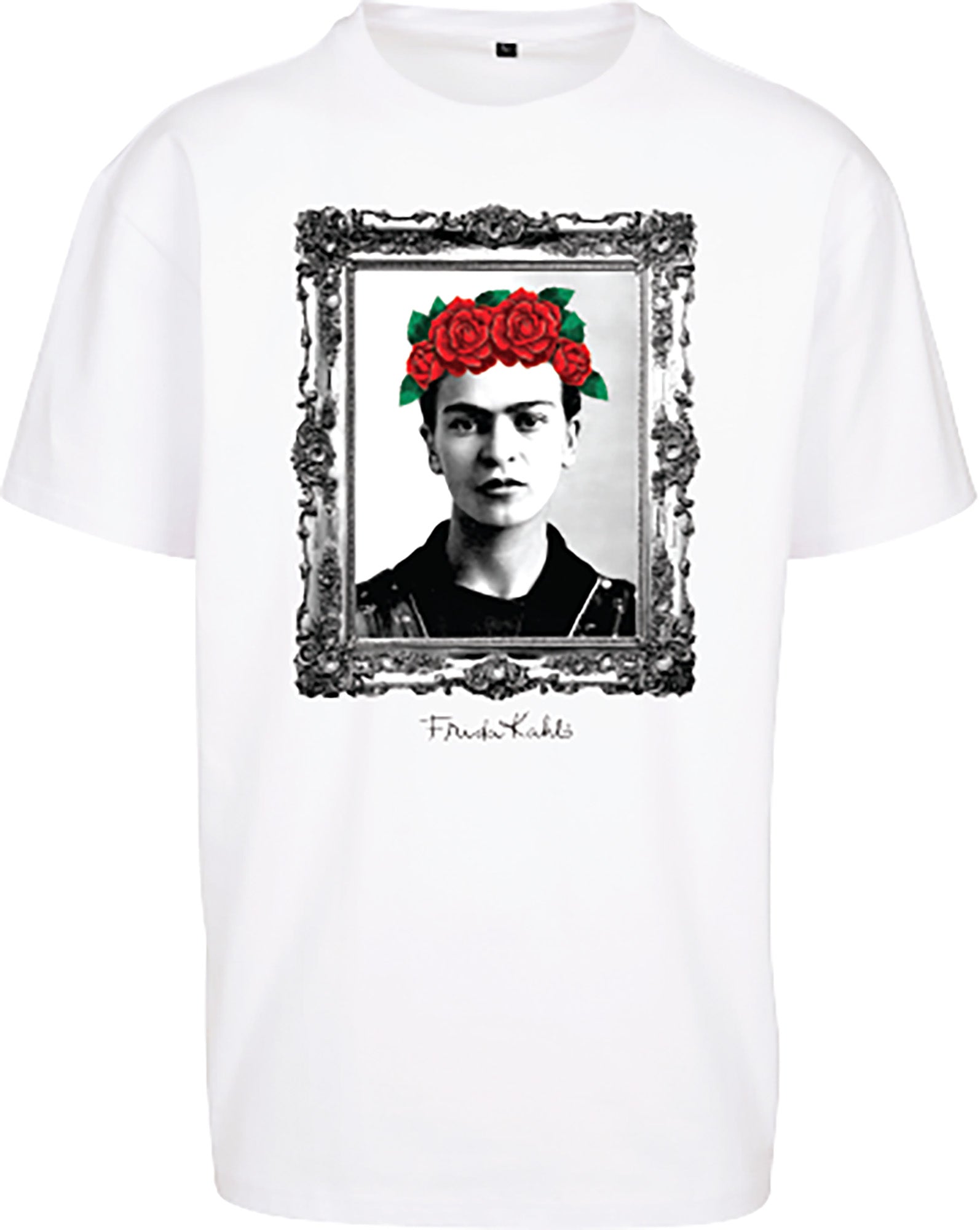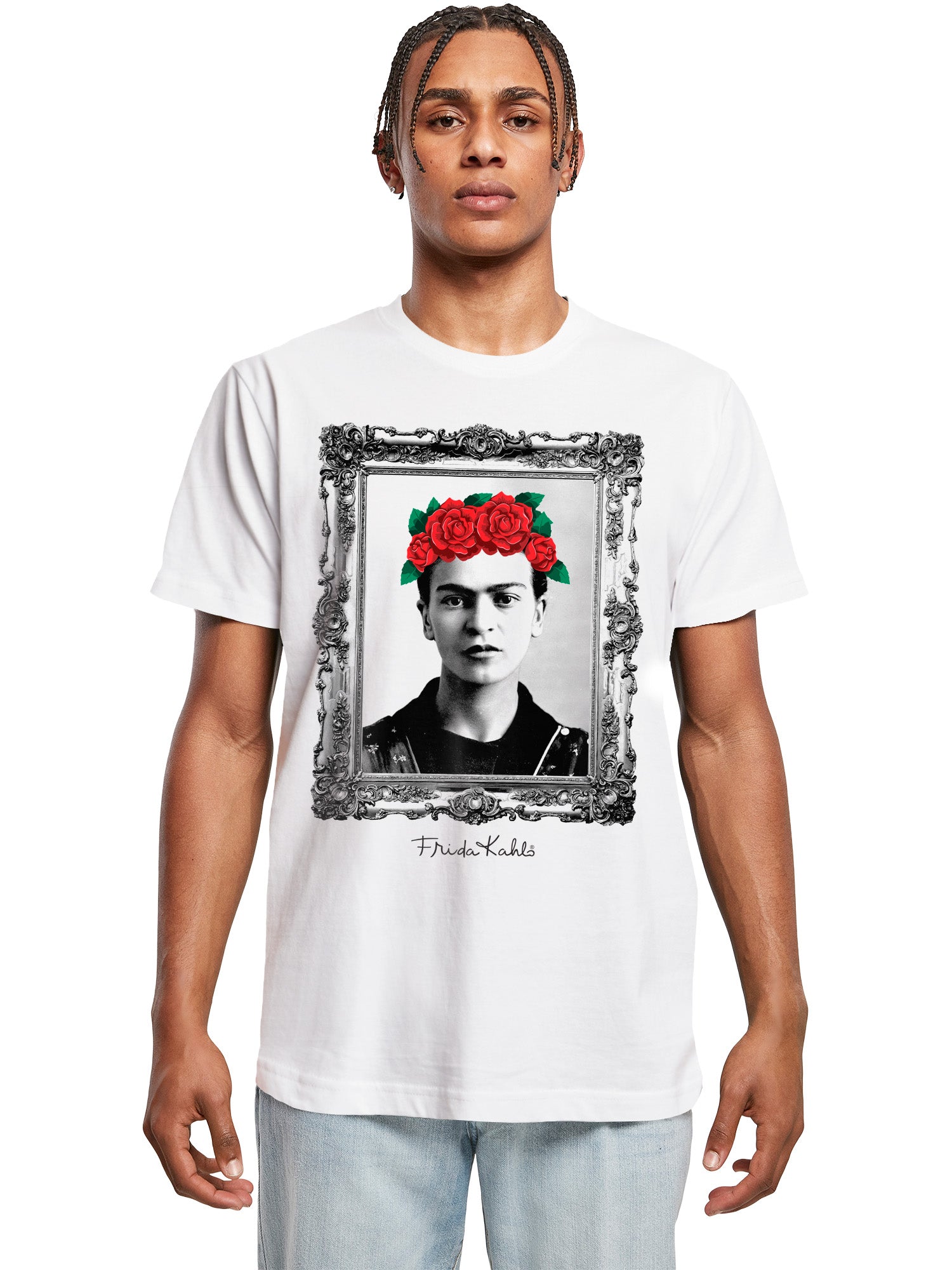 Frida Kahlo Men's T-Shirt - Frida Framed Floral Headband Print Design - White | Wholesale Licensed Art T-Shirts