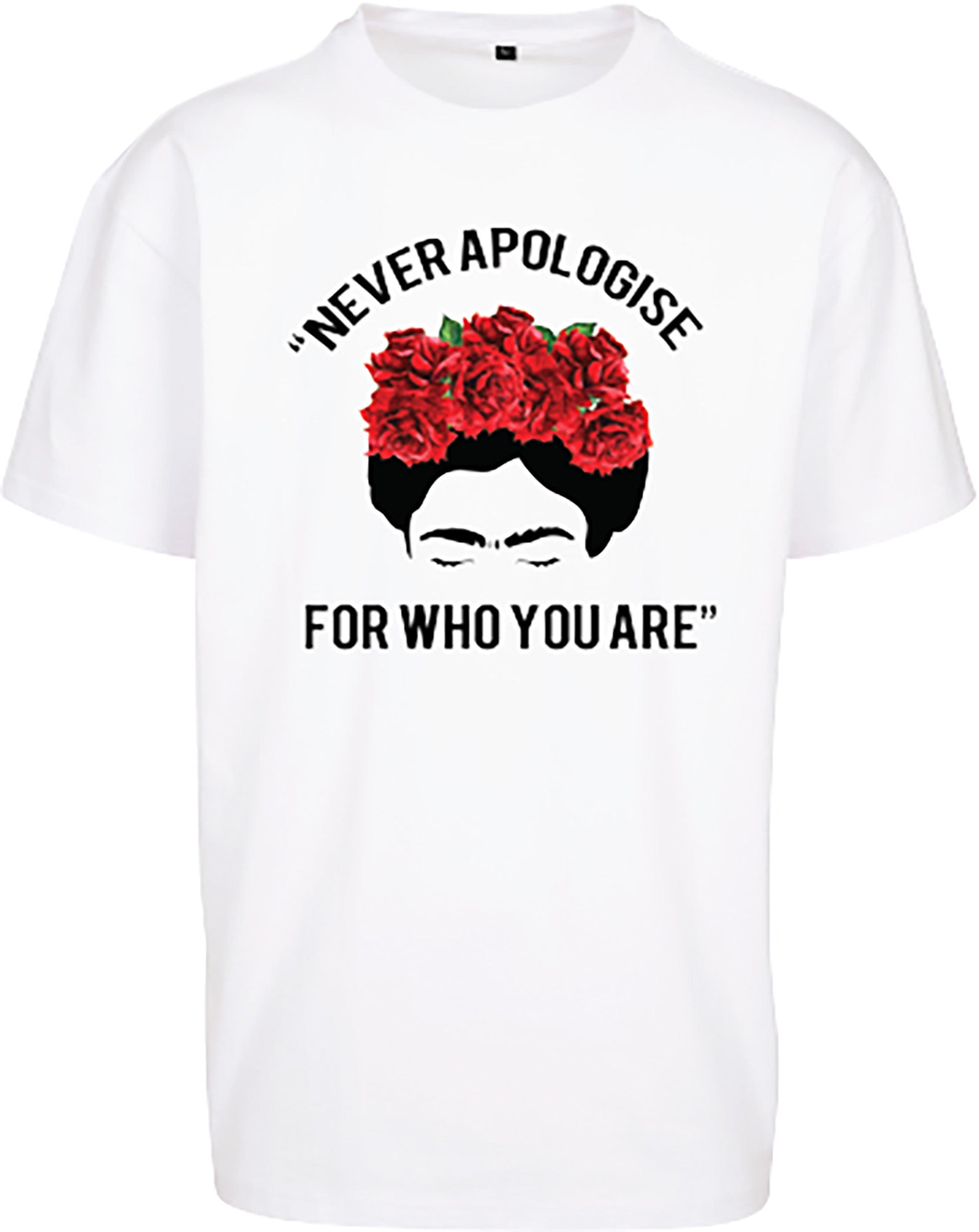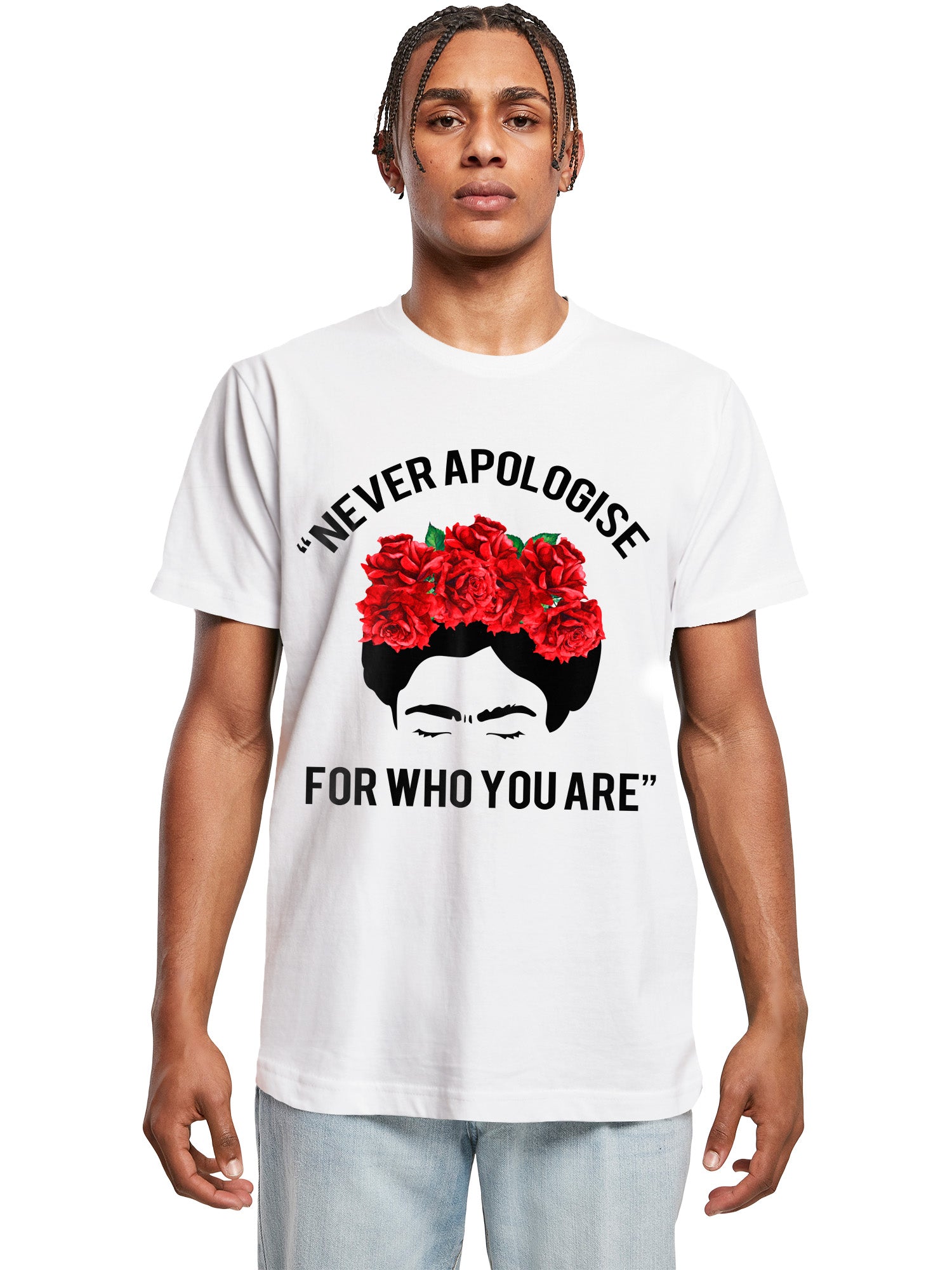 Frida Kahlo Men's T-Shirt - Frida Never Apologize Print - White | Wholesale Licensed Art T-Shirts