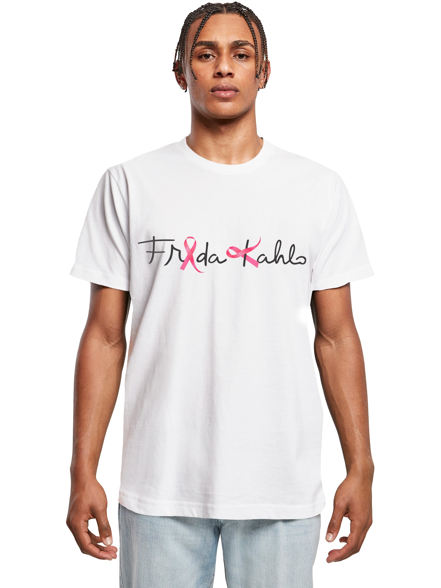 Frida Kahlo Men's T-Shirt - Pink Ribbon Design - White | Wholesale Licensed Art T-Shirts