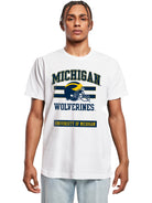 Stock officially licensed Block M tees in versatile white. These University of Michigan t-shirts wholesale feature timeless design that resonates with Wolverines fans. Order wholesale collegiate apparel in bulk for your store at competitive prices. Authentic licensing and quality construction build customer trust. Strong margins and year-round demand make these shirts a smart retail investment.