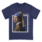 Classic Paintings Girl With a Pearl Earing Vermeer Navy T-Shirt | Wholesale Licensed Art T-Shirts