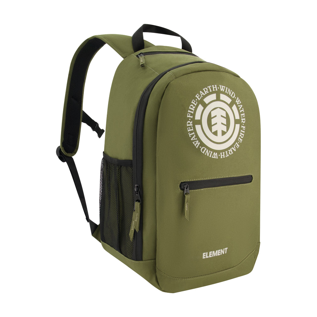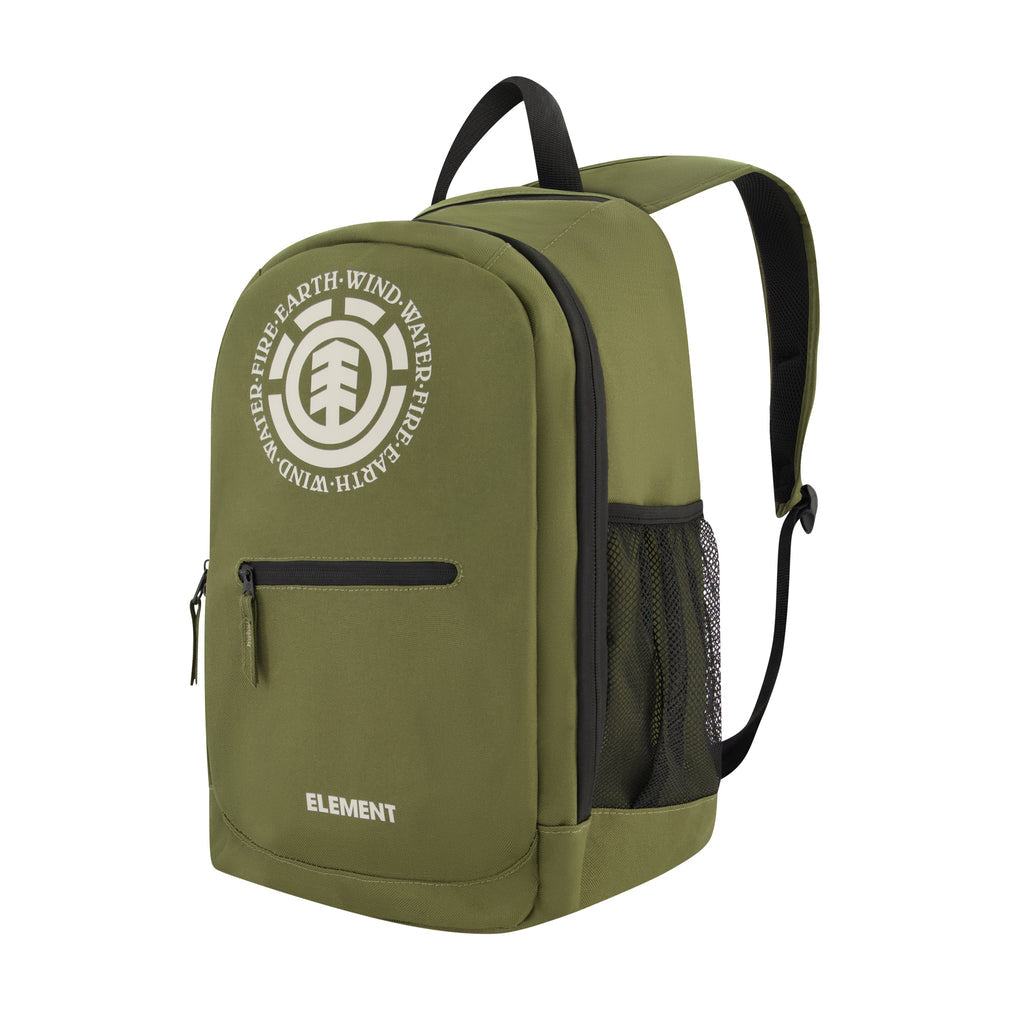 Embrace a sleek, rugged style and everyday practicality with the Element Backpack in Army Green. Designed for those who demand both functionality and durability, this backpack is perfect for everything from the skate park to the classroom or office. The bold Element logo on the front features the brand’s core values: Earth, Wind, Water, Fire, reflecting a deep connection to nature and adventure.With a spacious main compartment and a padded laptop sleeve, this backpack offers ample room to store your essentials and protect your devices. Ergonomically designed with padded shoulder straps and a breathable back panel, it ensures comfort even during long hours of wear. Additional features include exterior side mesh pockets, a front zip pocket, and a top zip pocket, offering easy access to your belongings.Crafted from durable 600D TPE material, the Element Backpack is built to withstand the daily wear and tear of urban and outdoor adventures alike. Whether you’re a student, professional, or outdoor enthusiast, this backpack is designed to suit your lifestyle, offering both functionality and style.Key Features: