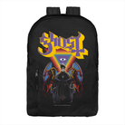 Offer your customers an officially licensed Ghost backpack that combines striking band artwork with everyday functionality. Measuring 12" x 17" x 6", this backpack features a flat front graphic print, a front pocket with a vertical zipper entry on the lower left side, durable material, and padded shoulder straps for comfortable daily use.