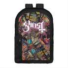 Offer your customers an officially licensed Ghost backpack that combines striking band artwork with everyday functionality. Measuring 12" x 17" x 6", this backpack features a flat front graphic print, a front pocket with a vertical zipper entry on the lower left side, durable material, and padded shoulder straps for comfortable daily use.