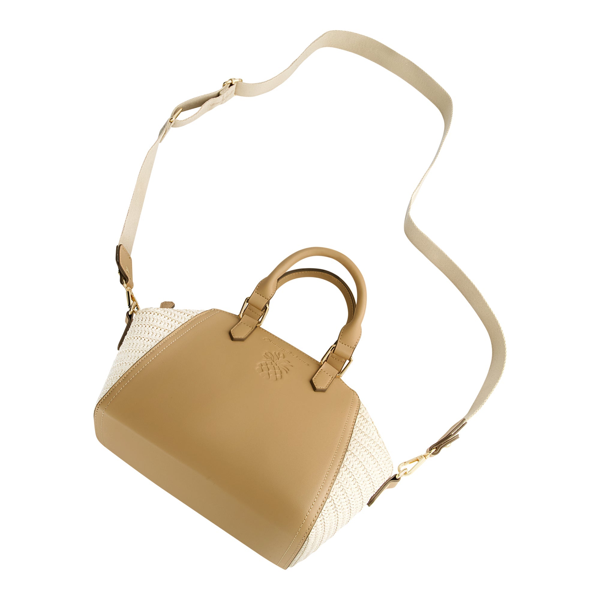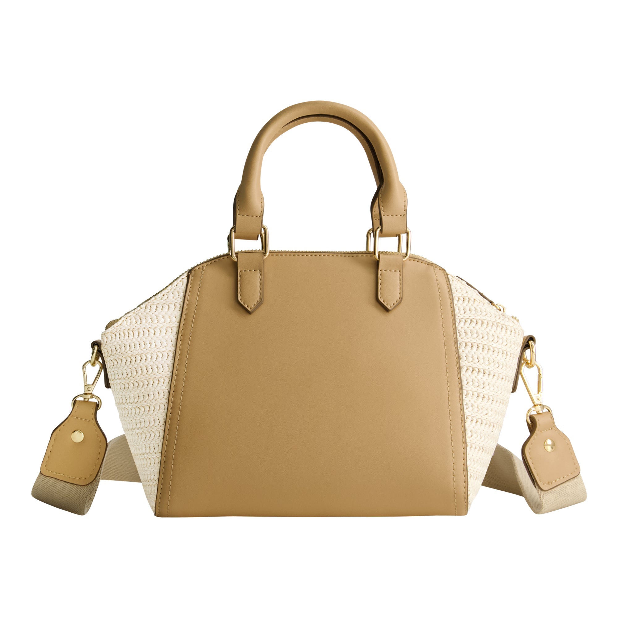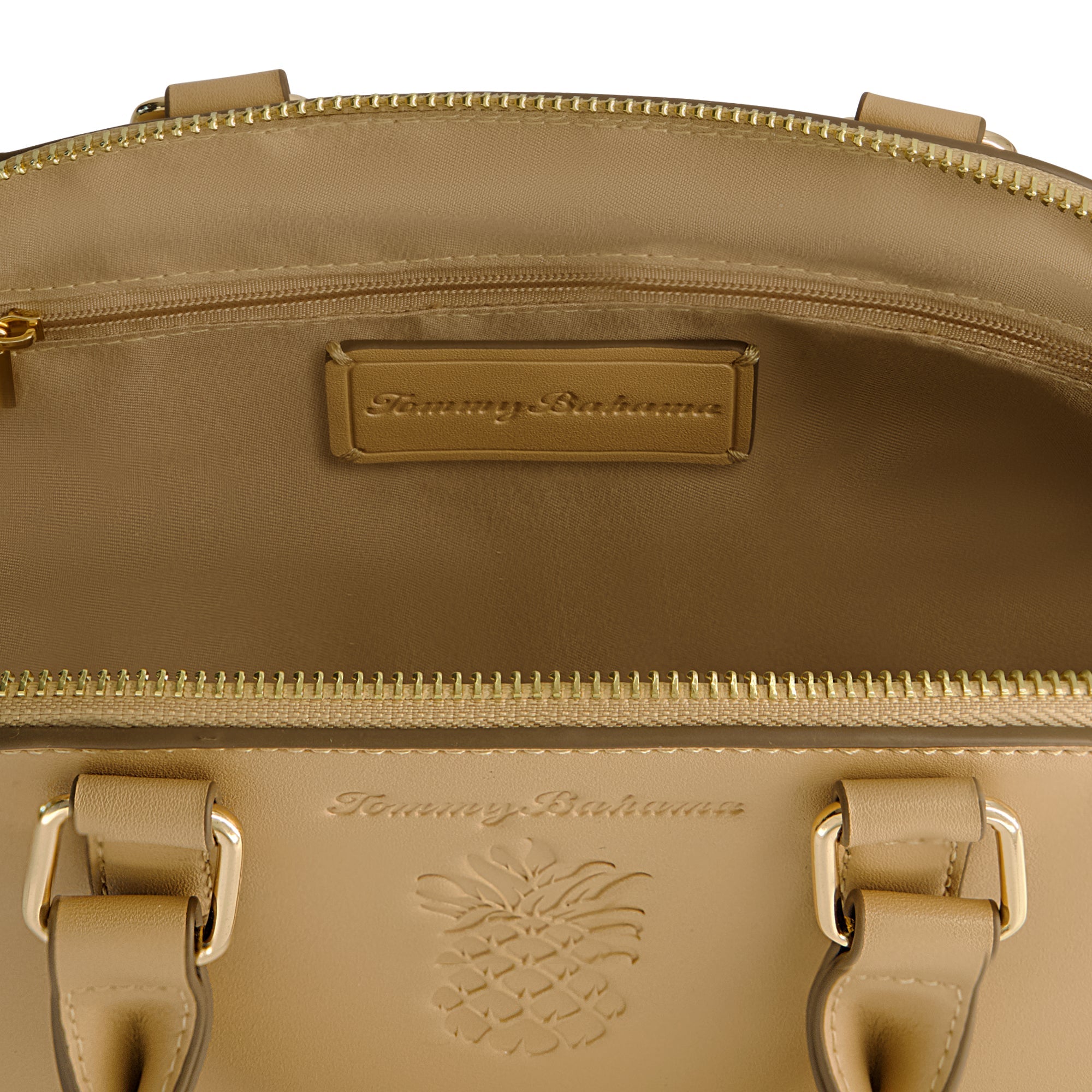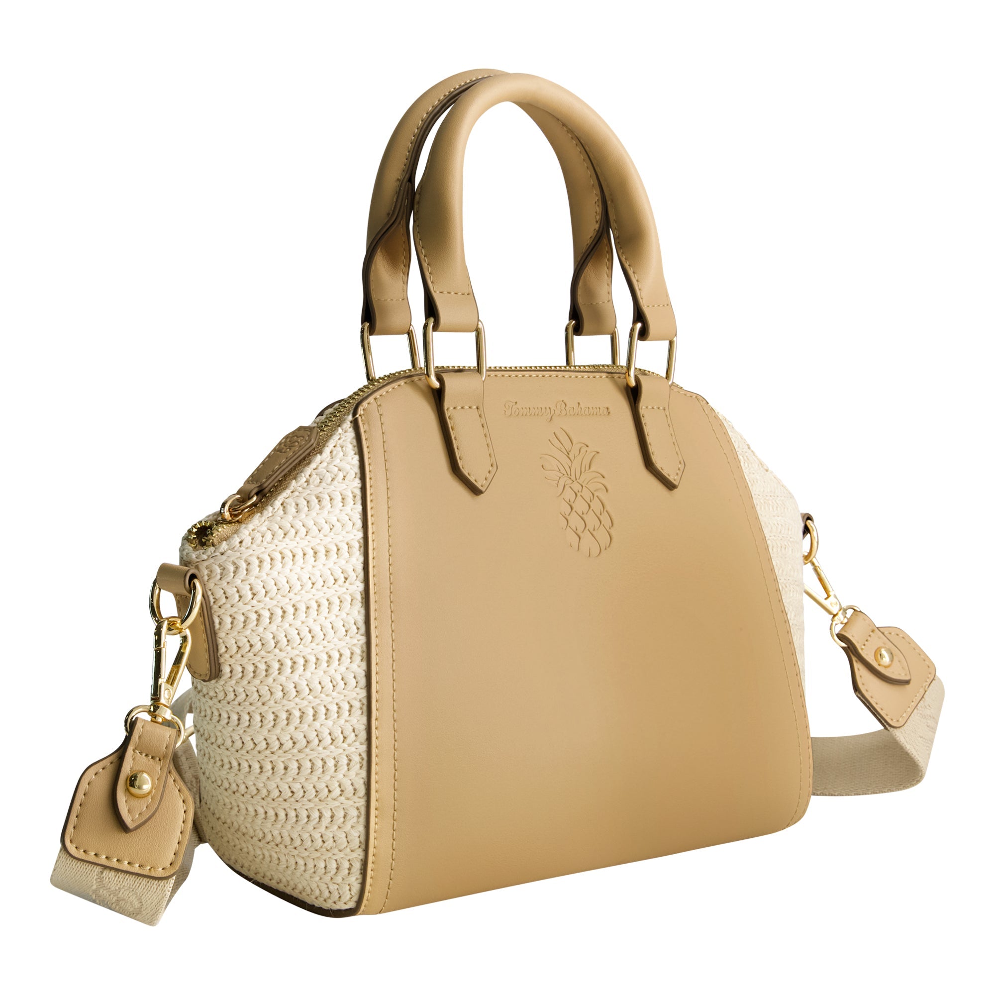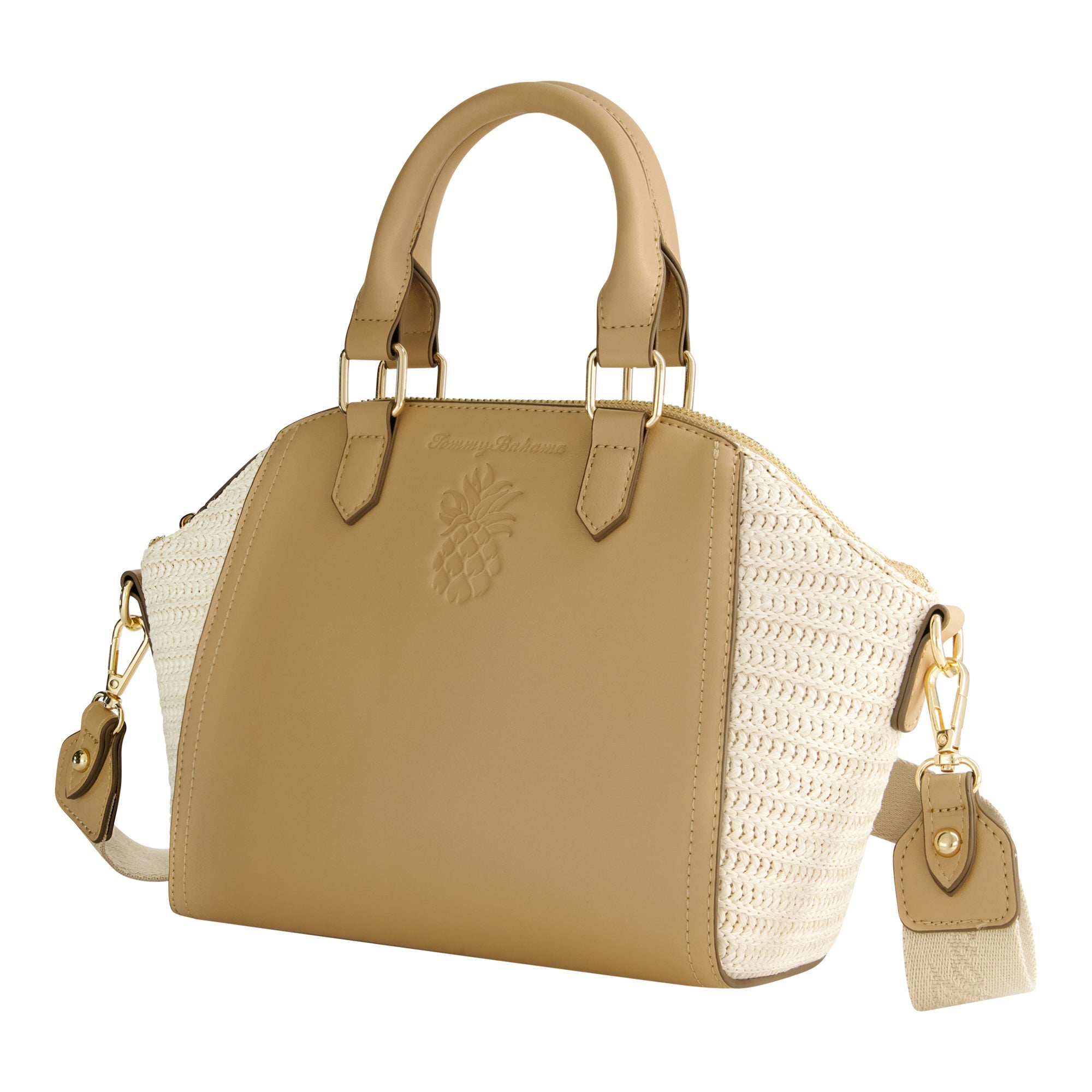 Tommy Bahama Large Satchel with Debossed Logo and Straw Accents, TAN | Wholesale Handbag - Satchel