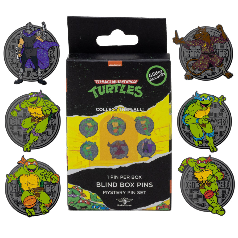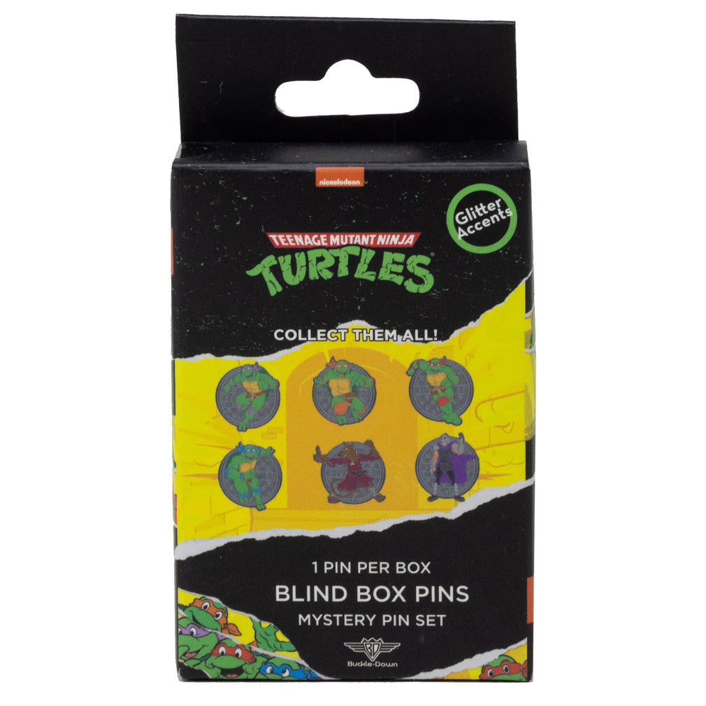 • Each Teenage Mutant Ninja Turtles Collectible Pin Blind Box contains a hard enamel pin featuring glitter accents bearing a random mystery icon from the TMNT series!