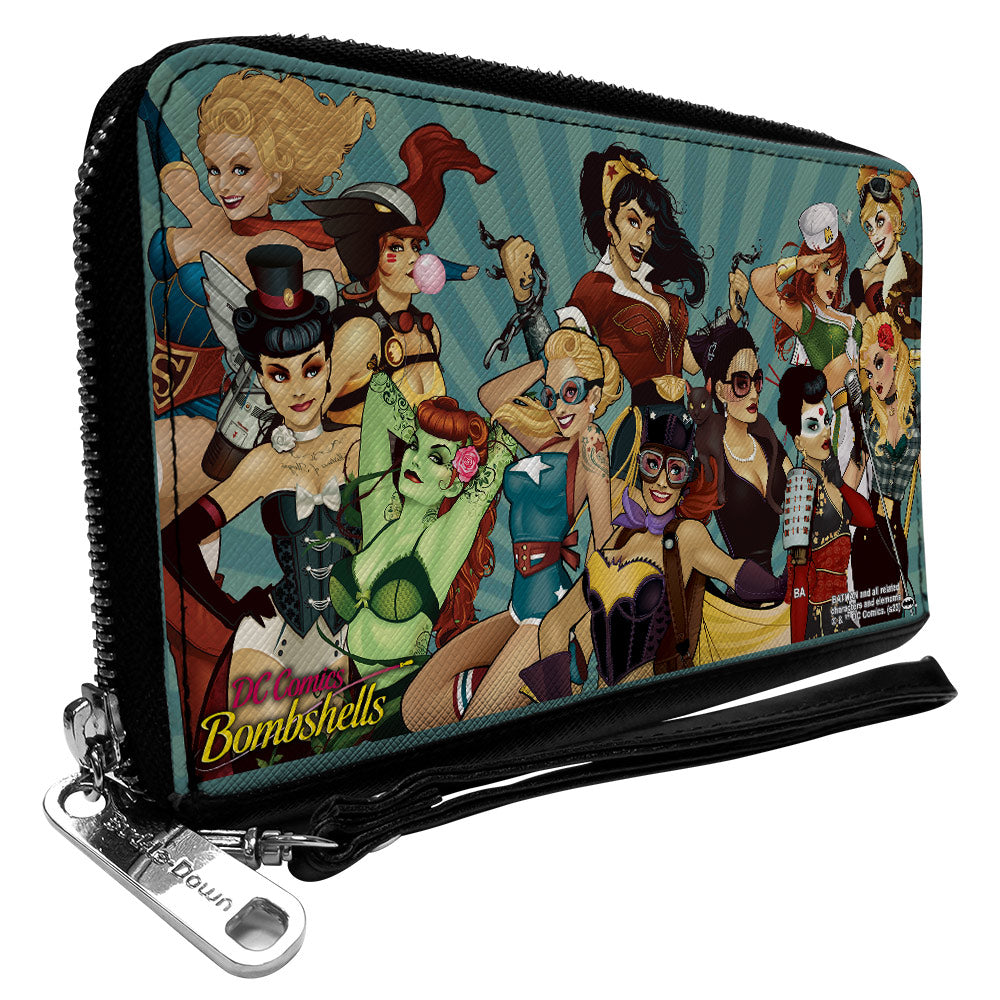 Wholesale PU Zip Around Wallet Rectangle - DC COMICS BOMBSHELLS Group Pose and Rays Blues | Wholesale Clutch Zip Around Wallets
