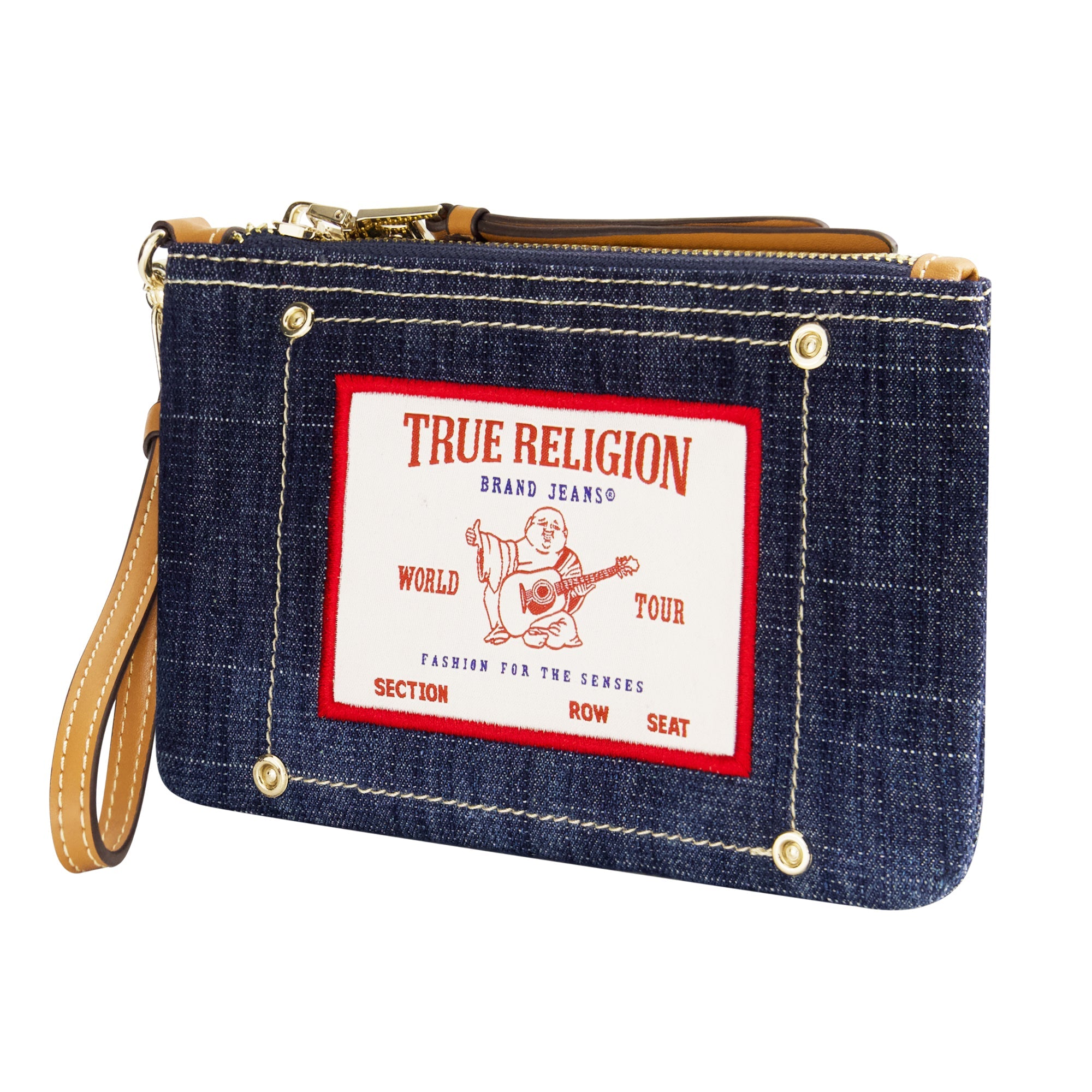 True Religion Buddha Patch Denim Wristlet, DARK DENIM | Wholesale Wallet - Wristlet